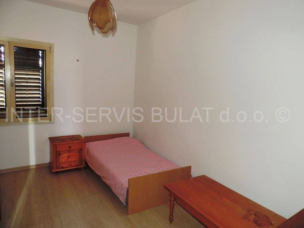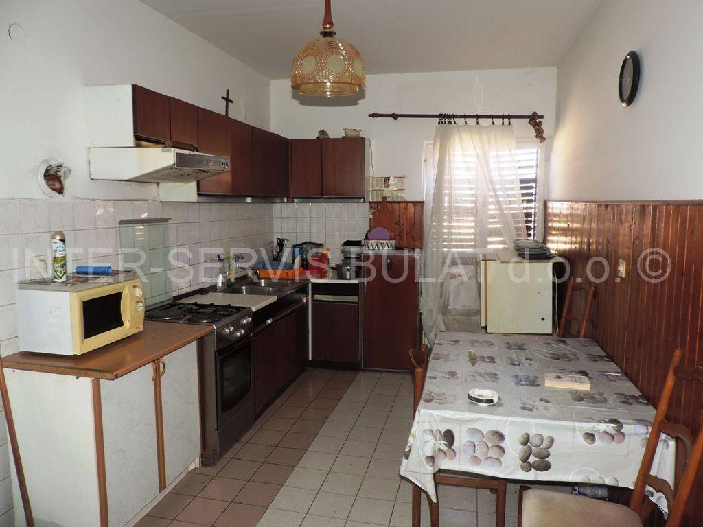 On the first floor there is a housing unit with a total of 116.21 m2, which consists of 4 bedrooms, a kitchen with a dining room, a hallway, a bathroom, a toilet, a storage room, a balcony and a terrace. External stairs lead to the attic of 87m2 in shell construction without partitions, loggia of 26m2, balcony 5.33m2 and sea view.