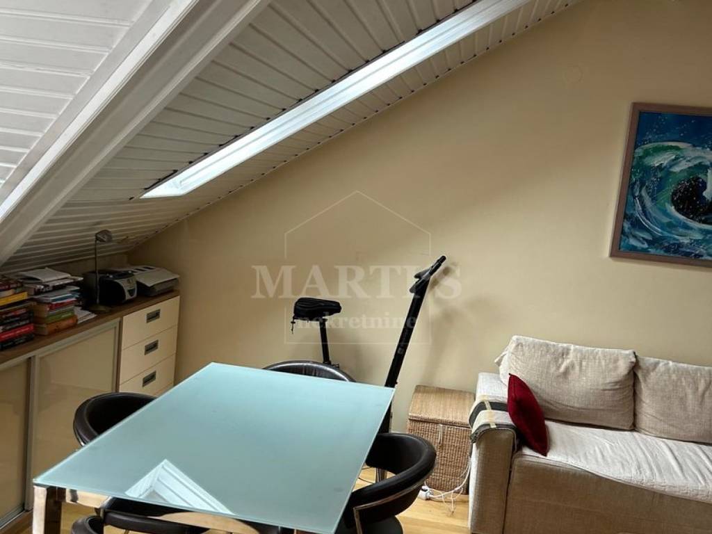 Ovaj stan na odličnoj lokaciji je prava prilika za one koji vole šarm potkrovlja, a zbog svoje pozicije u samoj zgradi je vrlo miran i zaštićen od buke.