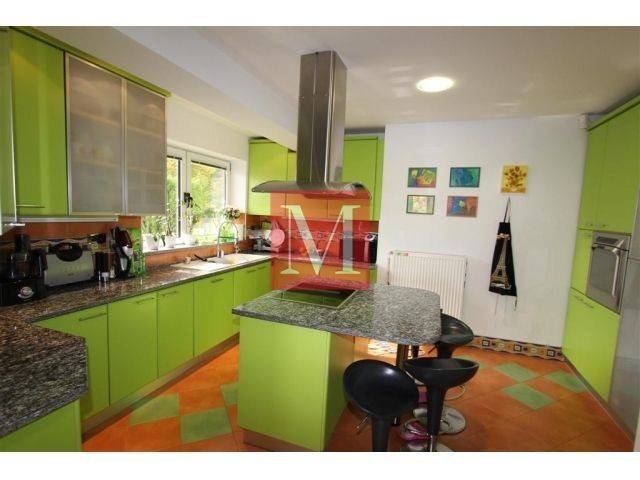 Upstairs there are 3 bedrooms, 2 bathrooms and a balcony. In the yard there is also an utility building of 4x8 m2, and a tool shed. The villa has 2 garage spaces and 5 additional parking spacesin the yard. Underfloor heating in all rooms. Solar panels for the house andpool heating.