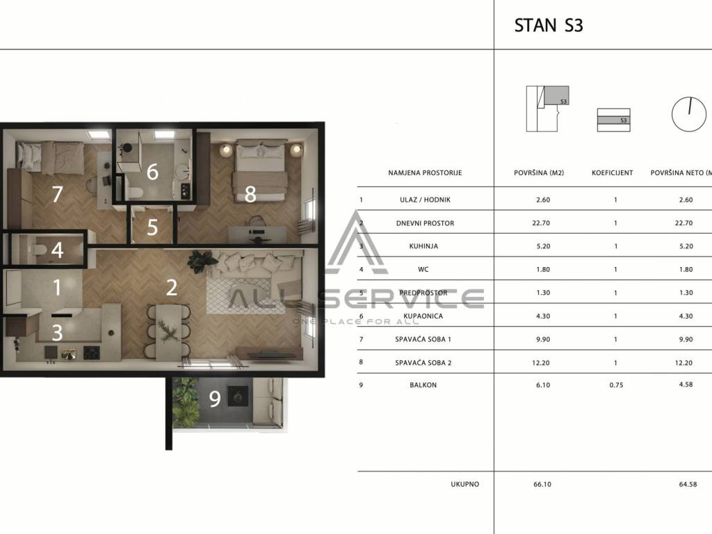 Flat Dugopolje, 95,05m2