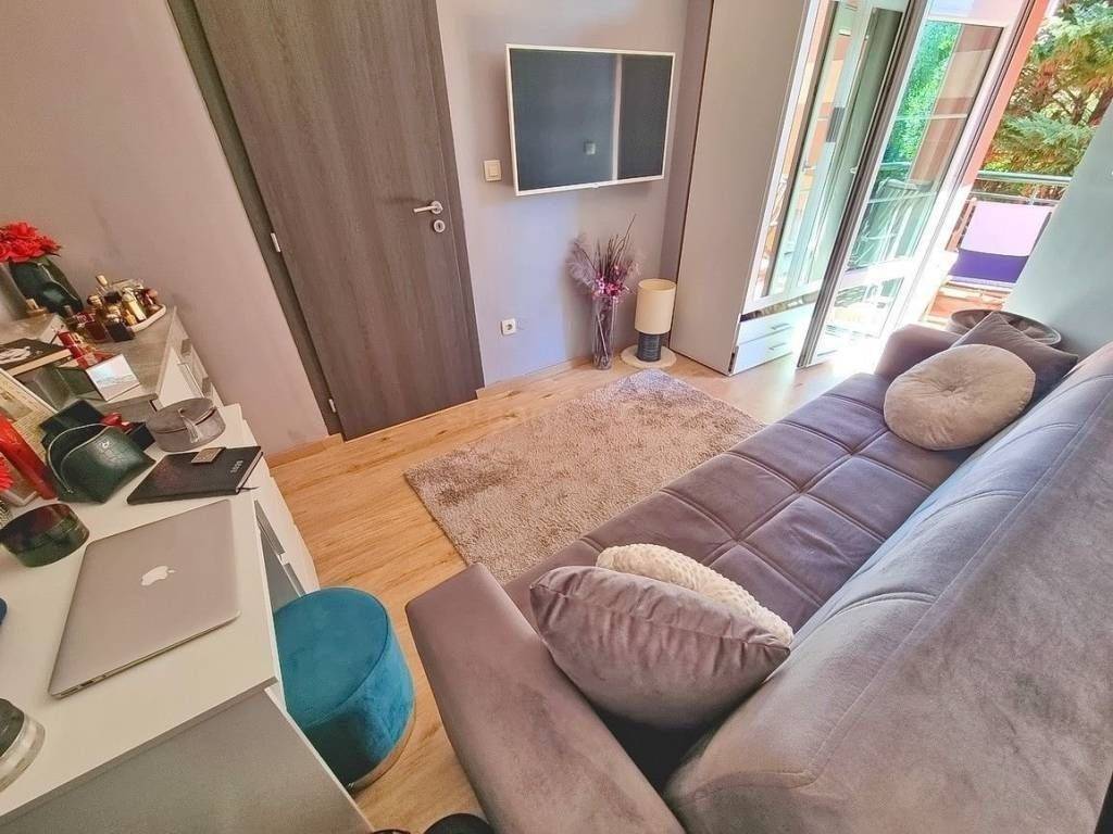 This is a spacious single-level apartment positioned on the first floor of an attractive building. Its total area of 67 m² comprises an entrance hallway, a living room connected to the kitchen and dining area, two bedrooms, a bathroom, and no less than four loggias. The interior has been carefully maintained, fully furnished, and equipped with high-quality furniture and modern appliances, adding extra value to the property. A particular advantage is the private courtyard of 25 m² as well as one parking space provided for the owner. The apartment is well oriented and offers a beautiful view of the sea and the coastline.