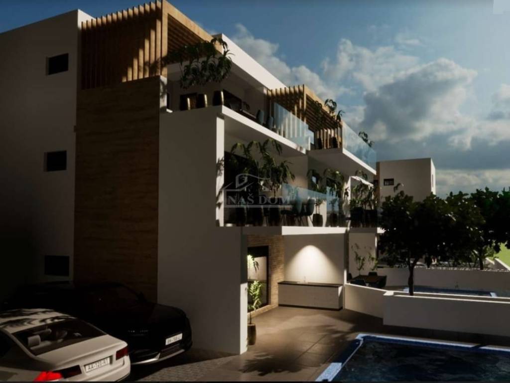 Tribunj - **NEW BUILD** * sea view* for sale is a triple house with a modern appearance. S1 House with a total area of 190m2 consists of three floors: ground floor + first floor + second floor. The ground floor consists of an entrance, toilet, laundry room, and an open space living area with access to a terrace ideal for outdoor living. An internal staircase leads to the first floor of the house, which consists of two spacious bedrooms, each with its own bathroom and access to a balcony. On the third floor of the house, there is a third bedroom with a bathroom, a separate walk-in closet, and a large rooftop terrace with planned installations for a jacuzzi and an outdoor kitchen. The house also includes a yard area of approximately 150m2 and three parking spaces.