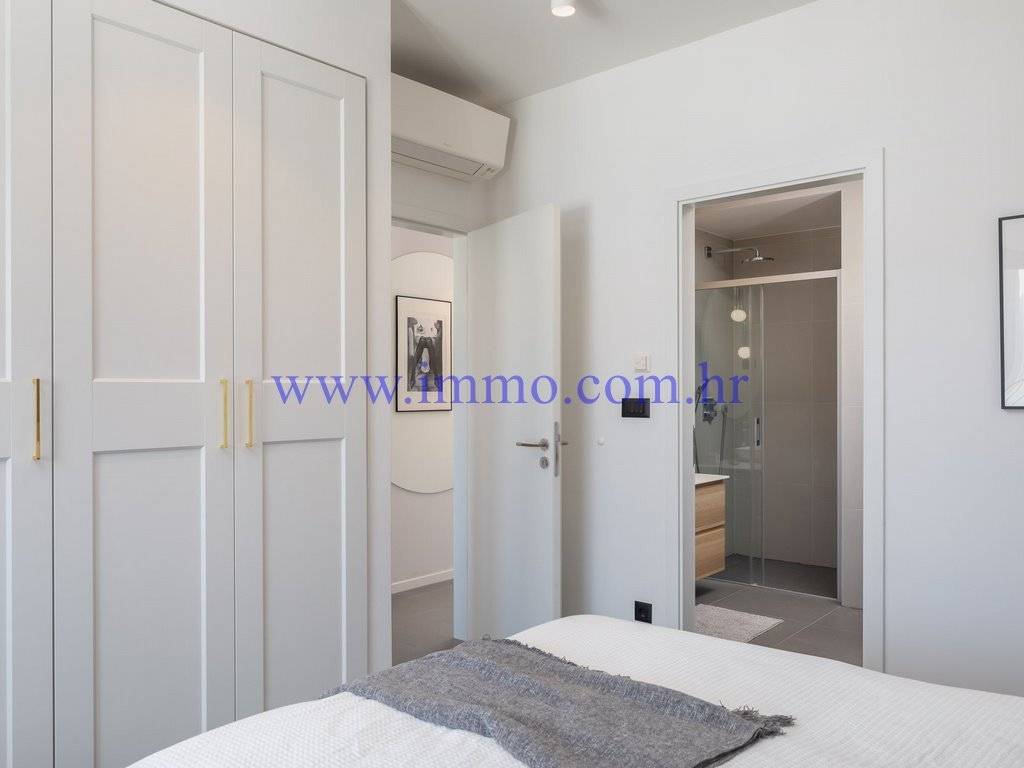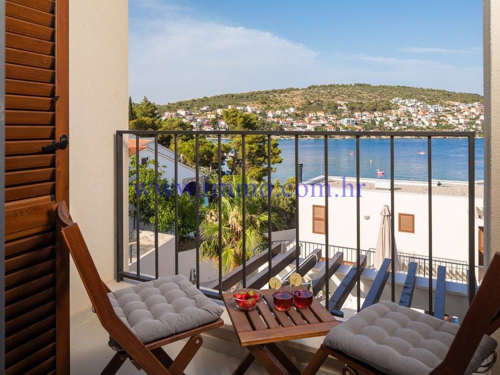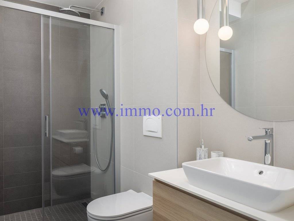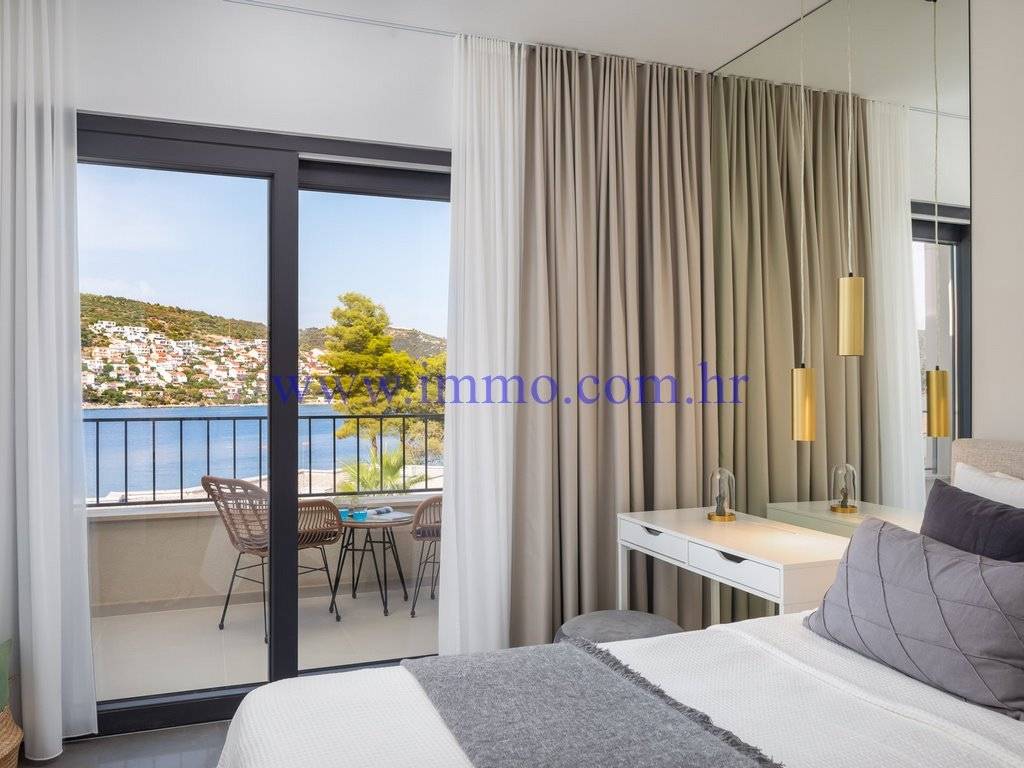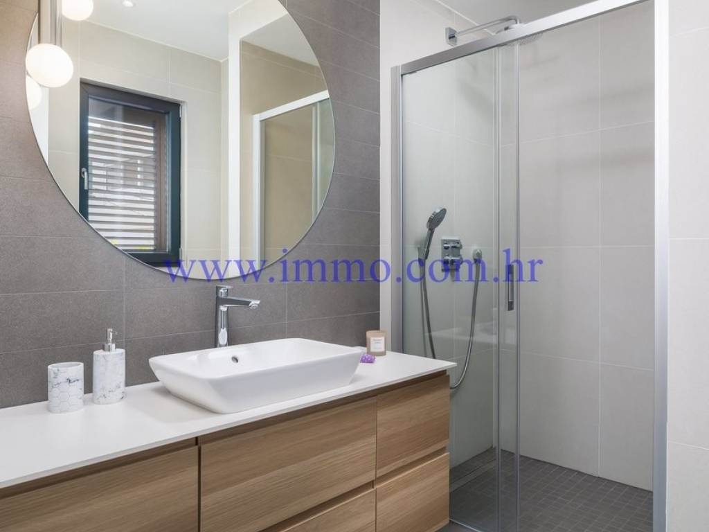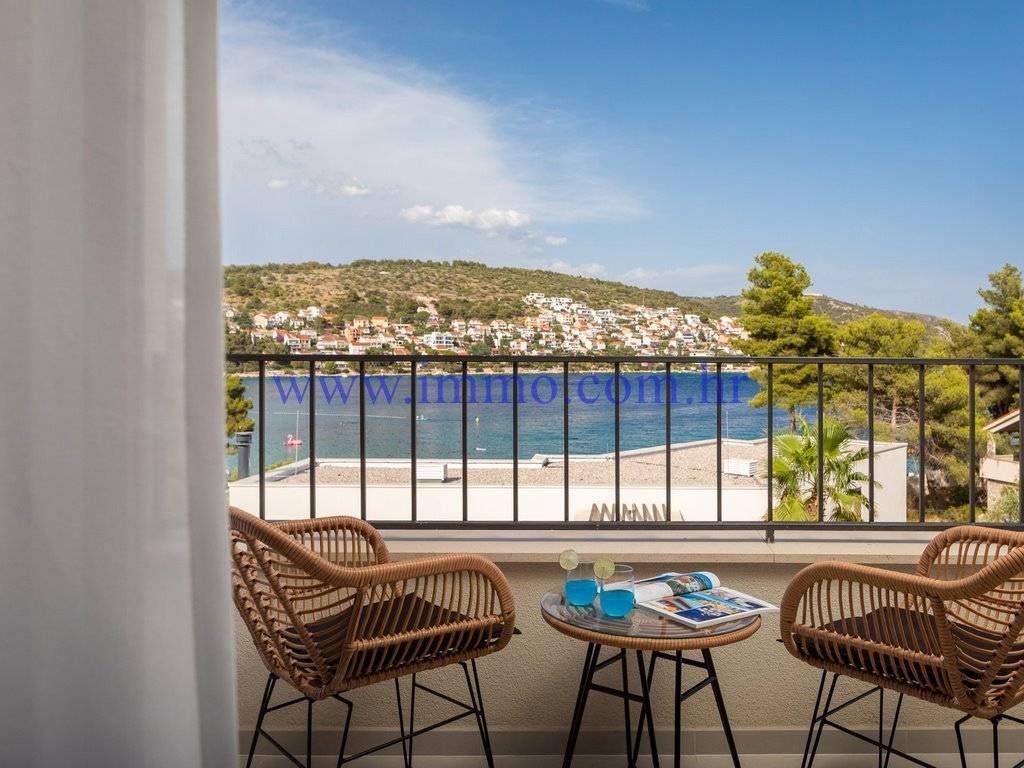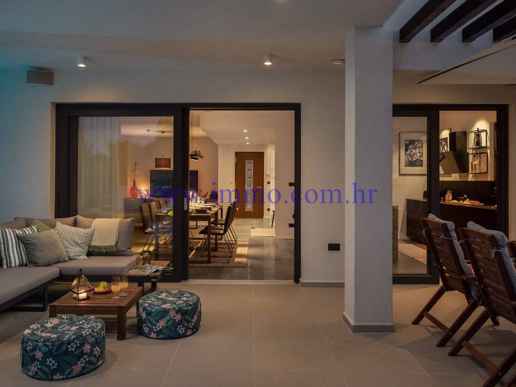 A new luxury villa is for sale, located in an exceptional location on the southern side of the island of Čiovo, just steps from the azure sea and a beautiful pebble beach with fine gravel. The villa, with an area of 290 m2, is built from the highest quality materials, tastefully furnished and equipped with modern furniture and appliances. The villa has a security alarm and video surveillance cameras, underfloor heating in the bathrooms, and air conditioning units in the rooms.