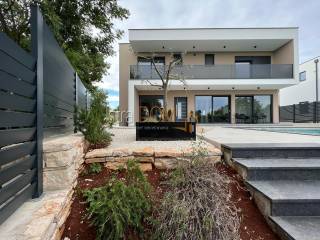 For sale is a beautiful modern villa located near Savičenta, spread over two floors, with a total area of ​​200 m2. On the ground floor there is a spacious living room that connects to the kitchen and dining room, a toilet and a technical room. The living room has access to the terrace and garden, where there is a summer kitchen and a 35 m2 swimming pool with a sunbathing area, ideal for enjoying the outdoors.