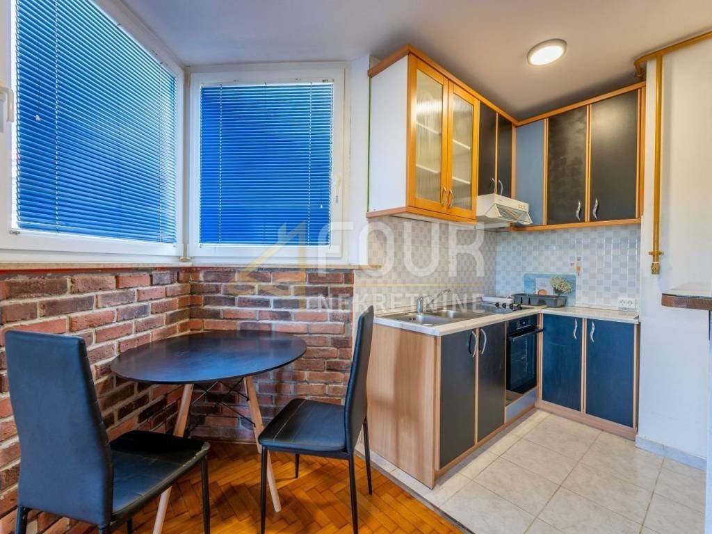 In the attractive Verudela area of Pula, a studio apartment of 39.51 m² is for sale in a modern residential building. It faces west, comes furnished, and offers additional comfort with air conditioning and PVC joinery. From the living space, there is access to a balcony of approximately 3 m².