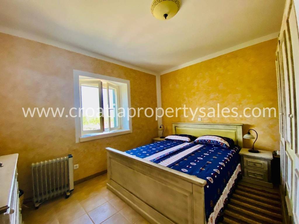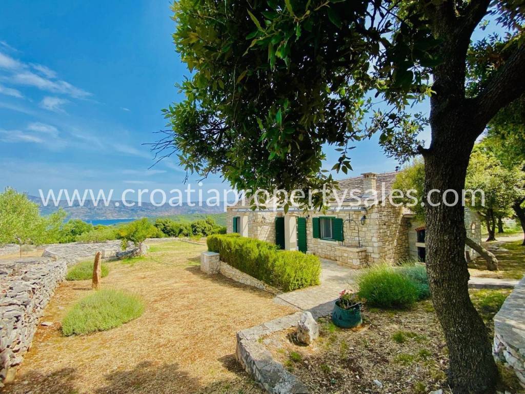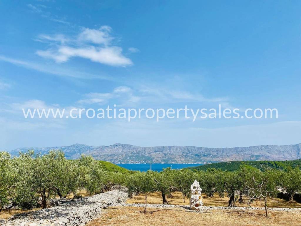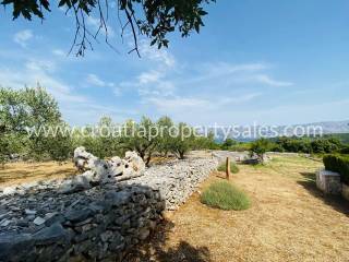Beautiful stone house in an olive grove with a sea view.In the heart of Mediterranean nature, among olive trees and other Mediterranean fruit trees, is located this beautiful authentic stone house that combines traditional charm and comfort.The property extends over a spacious plot of 6,000 m2 full of well-kept olive trees, pomegranate trees, linden, quince, fig trees, and the plot offers a breathtaking view of the sea.The house is built of natural, Brač stone with great attention to detail and quality of workmanship.The interior is equipped with quality custom-made furniture, which perfectly follows the rustic style, but provides all the necessary comfort of modern life.The house consists of a kitchen, dining area that can also be a living room, bedroom, bathroom and storage room. For a better atmosphere in the living area, there is a fireplace and a wood-burning stove. The living area is air-conditioned.In front of the house is a beautiful, comfortable space for socializing with a large table and a covered porch. In the yard there is a traditional bread oven, ideal for preparing homemade meals and socializing outdoors. Fans of local customs will enjoy the landscaped boules playground, which further contributes to the authentic Mediterranean atmosphere of how people used to live and have fun.There is also an outdoor fireplace and an old-fashioned water fountain. No expense was spared in the construction of the house and the surroundings.The house has a lightning rod. Electricity is city and water is from a 90,000-liter reservoir. There is also a basement, storage room and a tool shed. The olive and fruit trees are watered using a drip system.Plenty of parking space is provided for guests and family, and the entire plot provides a sense of privacy, peace and connection with nature.Whether you are looking for a peaceful vacation oasis, a house for living in nature or an authentic villa for tourist rental - this property represents a unique opportunity.