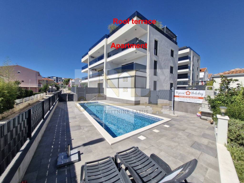 We are selling a penthouse apartment with a roof terrace S9 on the second floor of a new building in Okrug Gornji, in a prime location 300 meters from the sea and the beach.