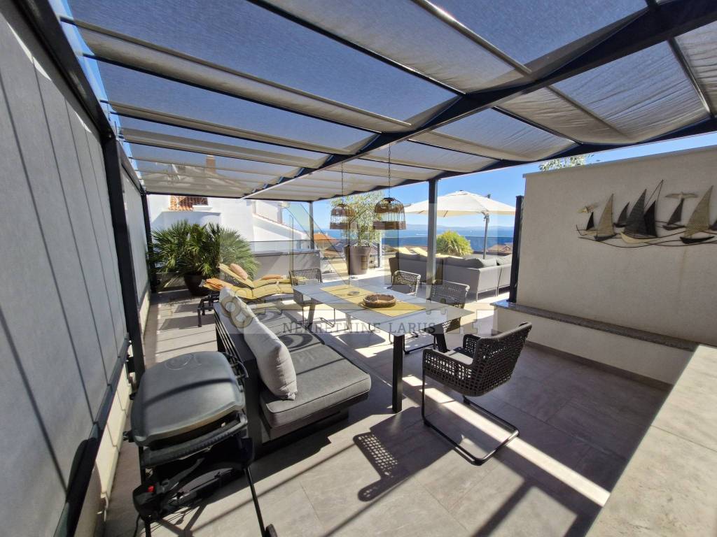 The penthouse apartment S9 on the second floor (63.13 m2) consists of two bedrooms, two bathrooms, a living room with a dining room and kitchen and a covered terrace (14.73 m2) and a roof terrace (83.43 m2) with a pergola, summer kitchen, shower, barbecue, table and deck chairs. The apartment has Star link internet.