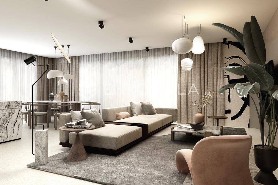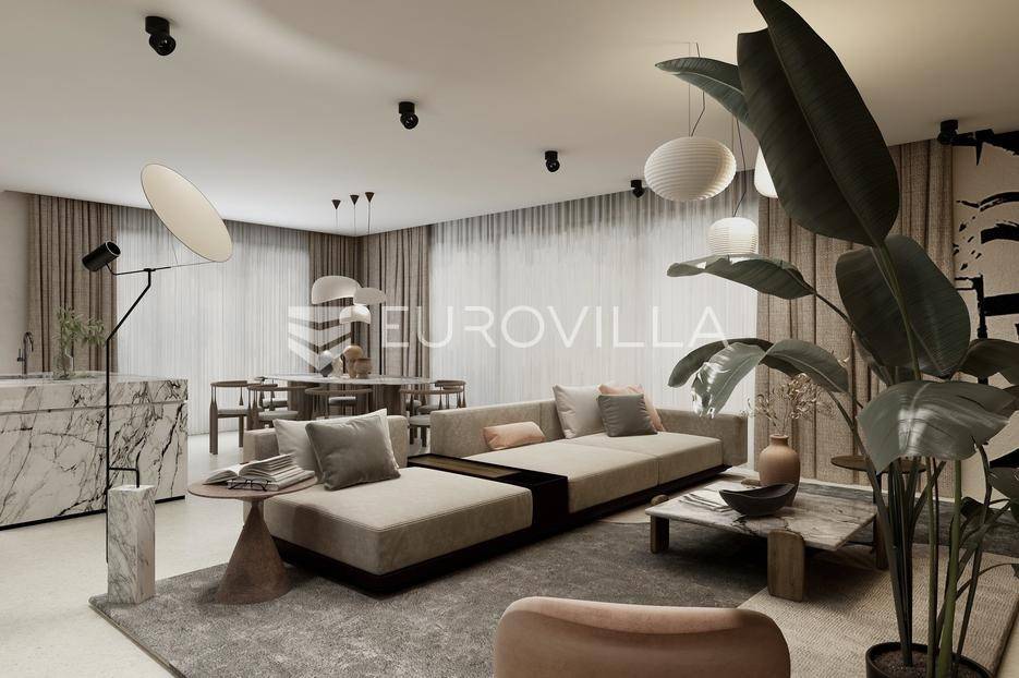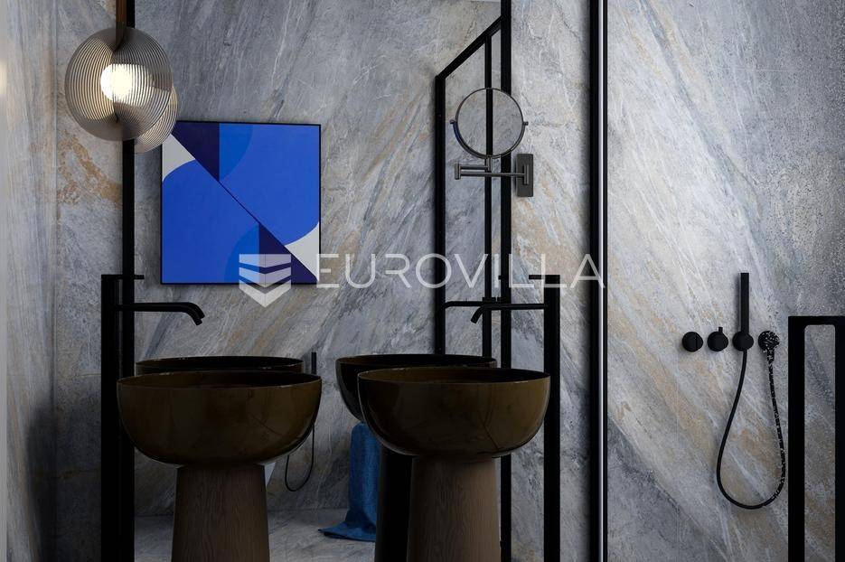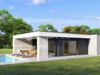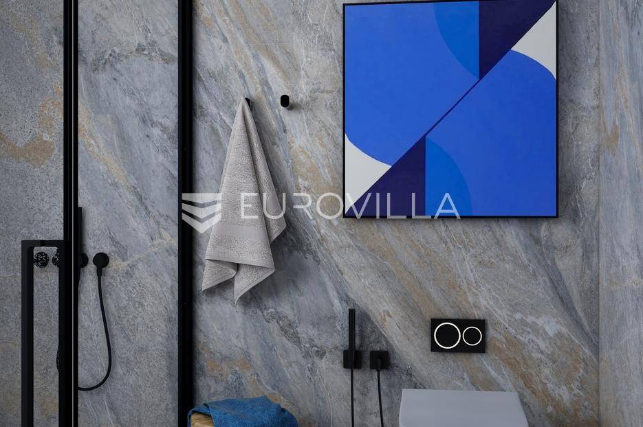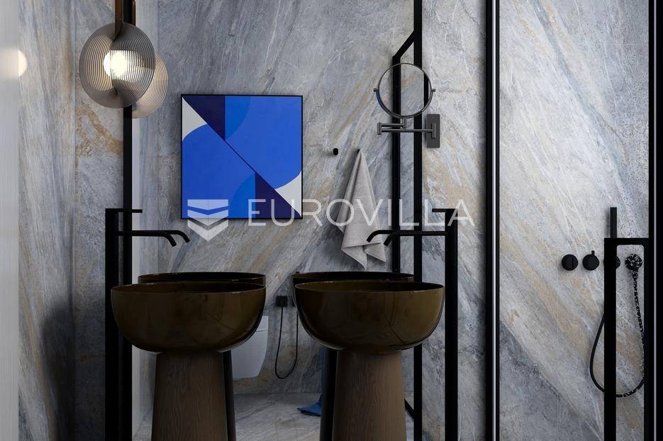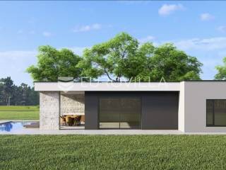 Smještena u pitomom Žminju na 900 m od samog centra mjesta, u srcu Istre, ova moderna kamena vila od neto 154 m2 na prostranoj parceli od 698 m2 idealna je za ljubitelje luksuza i mira. Pažljivo projektirana s najkvalitetnijim materijalima i suvremenim tehnologijama, ova nekretnina nudi ekskluzivan životni stil, kombinirajući istarski šarm s modernom funkcionalnošću.Interijer vile odiše elegancijom. Sve prostorije opremljene su podnim grijanjem i klimatizacijom, kontroliranim naprednim LG smart home sustavom za optimalnu udobnost i učinkovitost. Vila raspolaže s tri en-suite kupaonice, te dodatnim WC-om, sve opremljeno HansGrohe crnom armaturom i Villeroy & Boch sanitarijama s walk-in tuševima. Visokokvalitetna keramika, ALU/PVC stolarija s troslojnim LOW-E staklom i električnim roletama pridonose sofisticiranom dizajnu i izvanrednoj energetskoj štedljivosti.Vanjski prostor impresionira grijanim bazenom od 35 m2 s LED rasvjetom i hortikulturno uređenom okućnicom od gotovo 700 m2, s maslinama i noćnom rasvjetom, stvarajući privatnu oazu. Potpuna sigurnost osigurana je ograđenim dvorištem s električnim ulaznim vratima i video nadzorom. Dodatnu vrijednost čine 11 kW punjač za električna vozila i 12 kW solarna elektrana na krovu, osiguravajući značajnu samoodrživost.Predviđeno useljenje je 05. mjesec 2026. godine. Prodavatelj je pravna osoba stoga je cijena s ključenim PDV-om, a budući kupac je oslobođen plaćanja poreza na promet nekretnina.Ova izuzetna nekretnina idealna je za luksuzan obiteljski život ili kao isplativa investicija u Istri.Za dodatne informacije kao i dogovor oko termina razgledavanja Vam stojimo na raspolaganju.