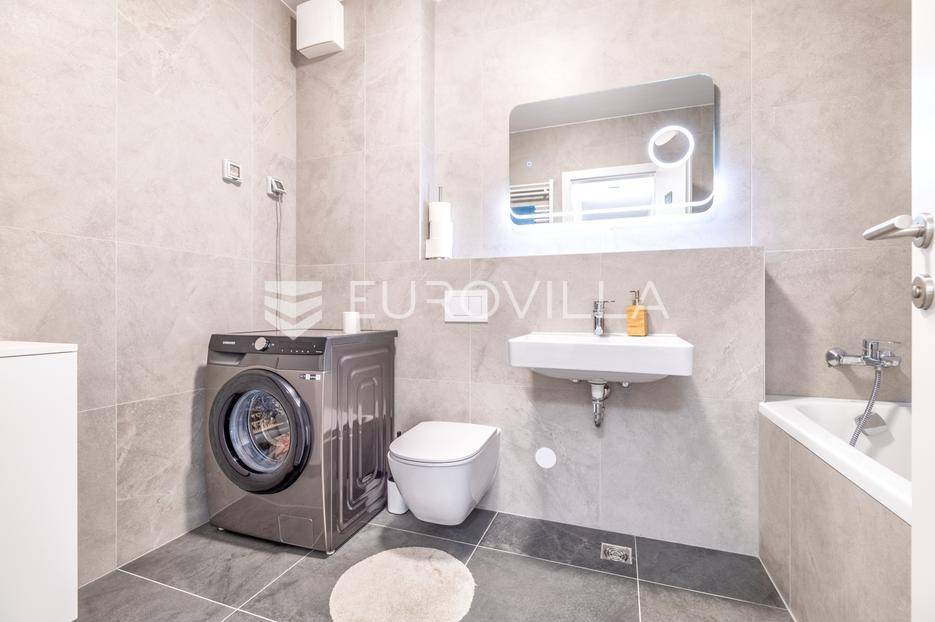 Atraktivan trosoban stan u prizemlju stambene zgrade, zatvorene površine 69,94 m². Stan se sastoji od ulaznog prostora, hodnika, kupaonice, odvojenog WC-a, roditeljske sobe, dječje sobe te dnevnog boravka povezanog s blagovaonicom i kuhinjom. Raspored prostorija jasno odvaja spavaći dio od dnevnog, što stan čini praktičnim i funkcionalnim za svakodnevni život.Uz unutarnji stambeni prostor, stanu pripadaju i vanjske površine - lođa korisne površine 6,35 m² te terasa od 1,54 m², kao i ostava površine 0,97 m2. Dodatnu vrijednost daje i pripadajući vrt korisne površine 7,55 m2.Stan također uključuje dva garažna parkirna mjesta ukupne neto korisne površine 13,03 m². Ukupno obračunski NKP 99,38 m2.Ova nekretnina predstavlja kvalitetno rješenje za dugoročan najam, bilo to za stambene ili poslovne/uredske svrhe.Odlična lokacija u blizini svih bitnih sadržaja.Za sva pitanja Vam stojimo na raspolaganju.