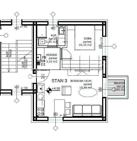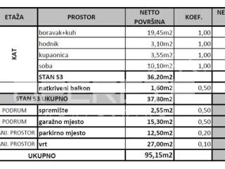 Površina zatvorenog dijela stana: 37,80m²