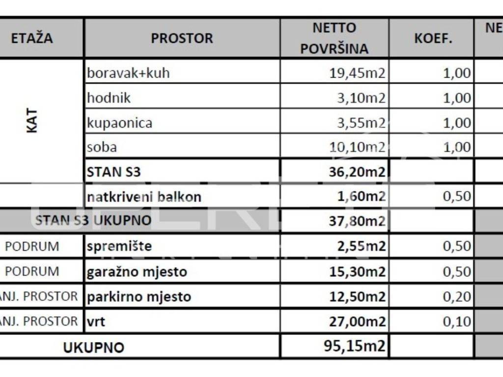 - garažno parkirno mjesto (15,30m2)
