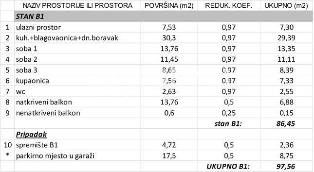 B1 – 1. kat – 3x spavaća soba – NKP 97,56 m2 – 390.000 €