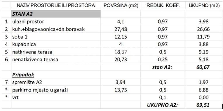 A2 – prizemlje – 1x spavaća soba – NKP   69,51 m2  – 265.000 €