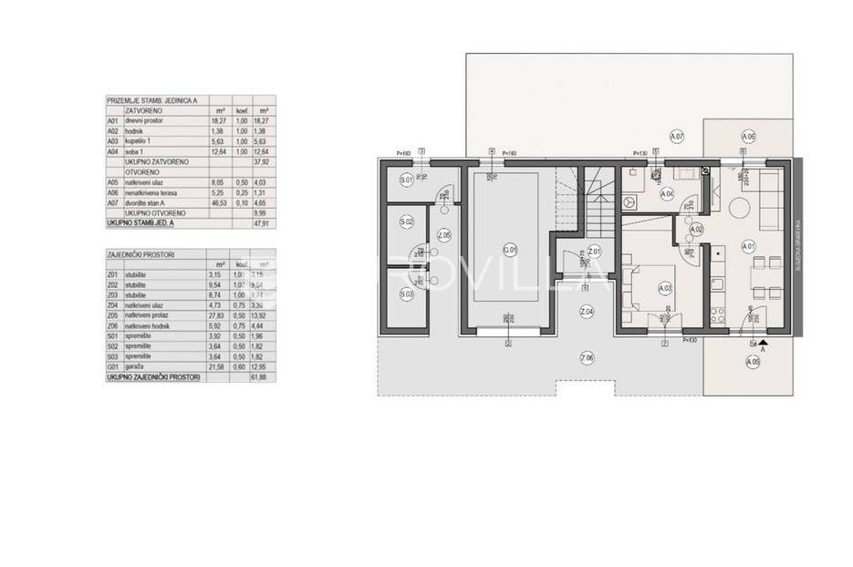 Predstavljamo novu stambenu zgradu od ukupno tri zgrade u nizu. Svaka zgrada se sastoji od četiri stambene jedinice.Riječ je o stanu u zgradi A oznake S1.