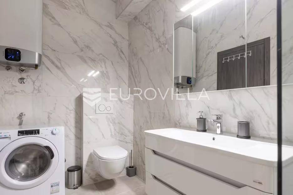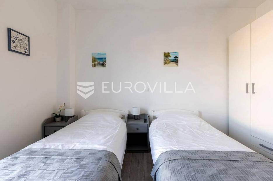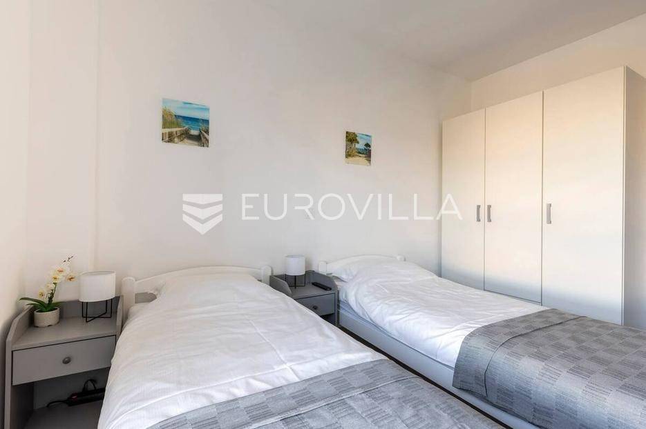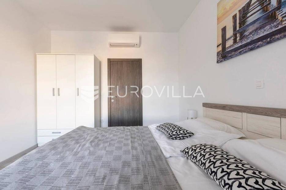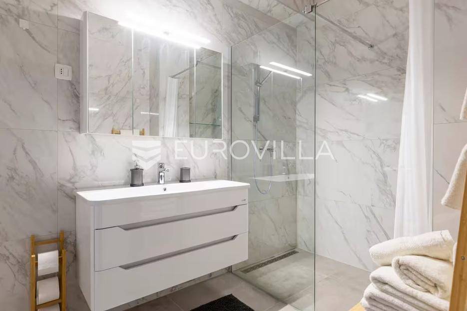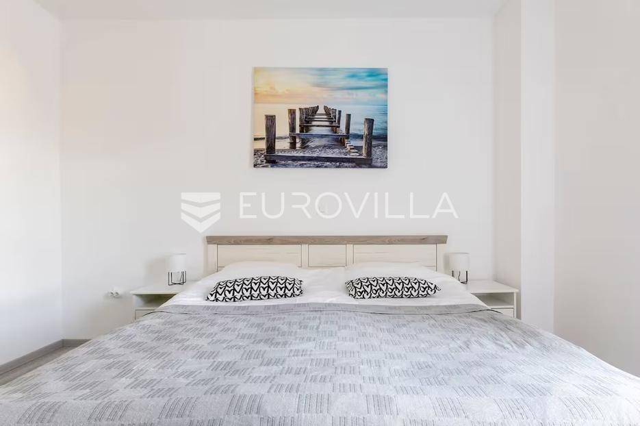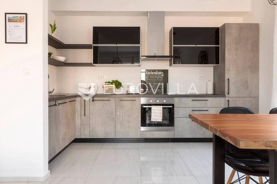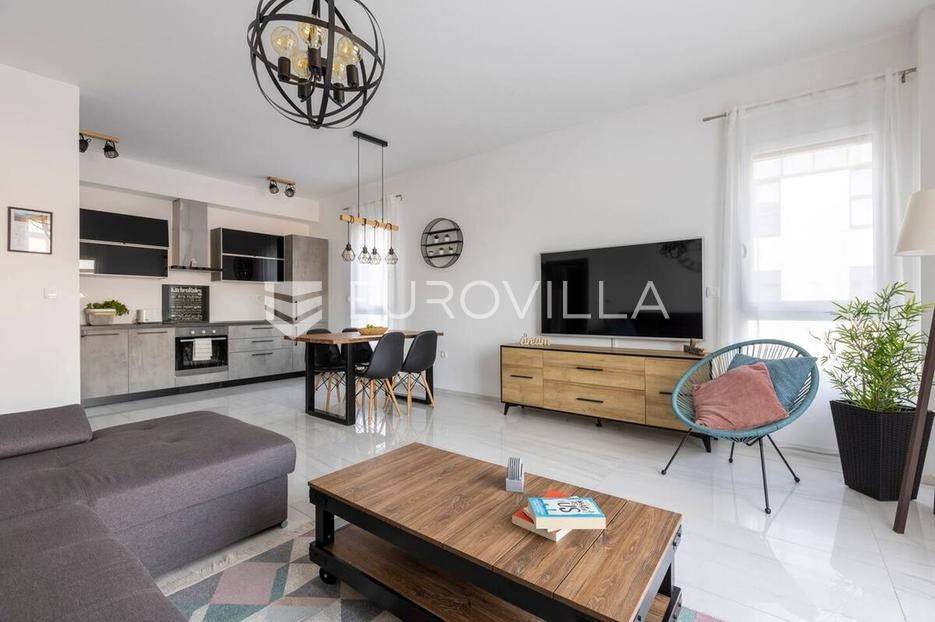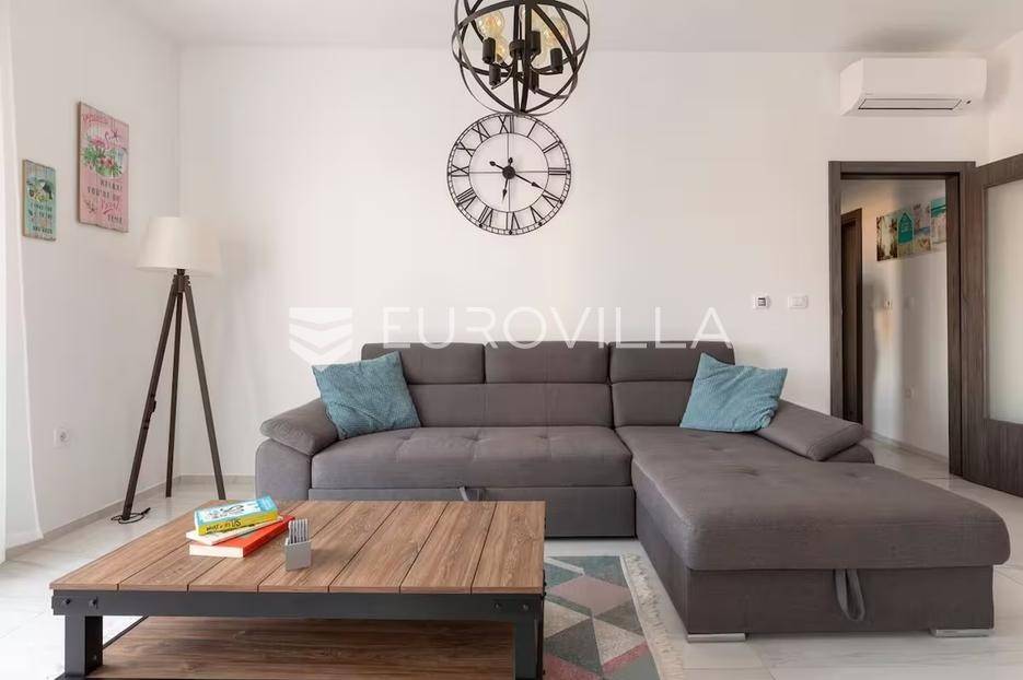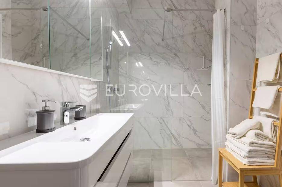 U središtu grada na najboljoj gradskoj lokaciji nalazi se ovaj moderan u potpunosti elegantno opremljen stan NKP 85 m2 smjesten na trećem katu stambene zgrade s liftom.Stan se sastoji od ulaznog dijela, dvije komforne spavaće sobe, velikog dnevnog boravka s izlaskom na natkrivenu terasu od 20 m2 idealnu za odmor od dnevnih obaveza i popodnevno opuštanje. Moderna kuhinja u potpunosti je opremljena svim najsuvremenijim kućanskim aparatima. Na raspolaganju je i kupaona i spremište kao dodatan prostor.U svim sobama su postavljeni smart home televizori, kao i u dnevnom boravku. Tri inverter klime za hlađenje i grijanje, iako je u cijelom stanu postavljeno podno grijanje. Sve su roletne električne, te su postavljeni i komarnici u svim prostorijama. Vanjska stakla prozora su fotosenzibilna i osiguravaju dodatnu zaštitu od sunca.Stanu pripada i jedno vanjsko parkirno mjesto koje je svakako velika prednost u centru grada.Kao dodatna pogodnost, osim mogućnosti dugoročnog najma, stan se može iznajmiti i na period od 6 mjeseci.Sveobuhvatno se dodatno plaćaju režije u iznosu od 130 eura.Za više informacija organizaciju razgleda slobodno nas kontaktirajte.