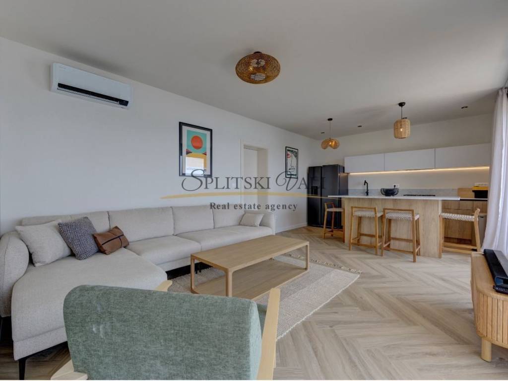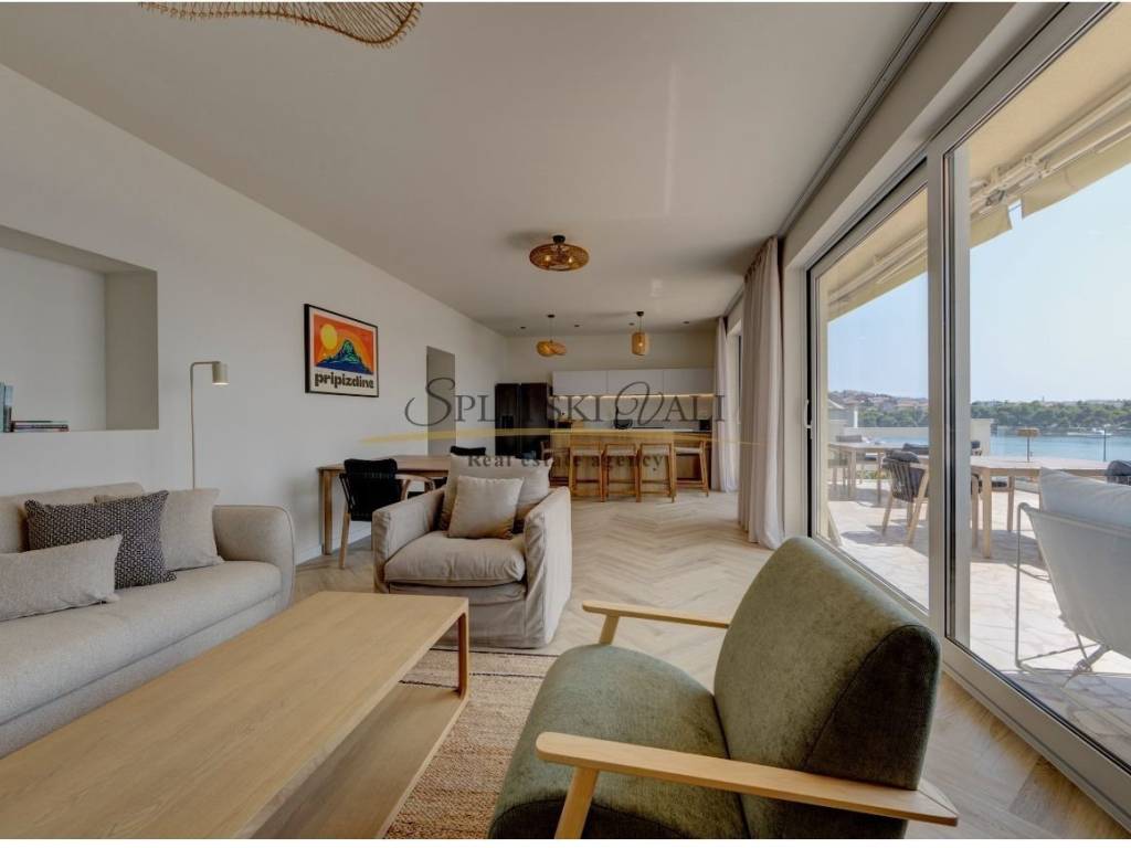 Novoopremljen stan površine 100 m² dostupan za najam od 1. listopada do 1. svibnja, uz mogućnost dugoročnog najma uz korekciju cijene. Nalazi se na drugom katu privatne kuće, u neposrednoj blizini plaže.Stan se sastoji od dvije spavaće sobe, dvije potpuno opremljene kupaonice, prostranog dnevnog boravka, blagovaonice i kuhinje otvorenog koncepta s izlazom na terasu od 40 m² te dodatnog balkona od 6 m². Funkcionalan raspored i moderna oprema osiguravaju visoku razinu komfora.Najmoprimcima je na raspolaganju grijani bazen s magnezijem koji se može koristiti tijekom cijele godine. Plaža je udaljena svega nekoliko koraka, a u blizini se nalaze svi sadržaji potrebni za svakodnevni život.Režije nisu uključene u cijenu.Stan je prikladan za obitelj ili pojedince koji traže kvalitetan i prostran smještaj na mirnoj lokaciji u Trogiru.Za dodatne informacije i uvjete najma kontaktirajte nas!*Petra+385 99 165 5551