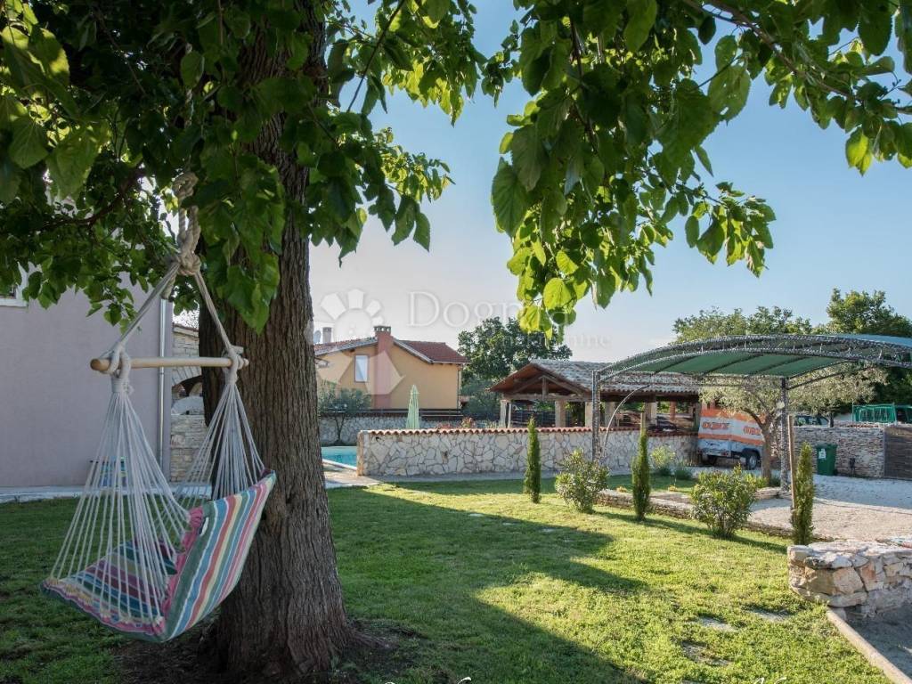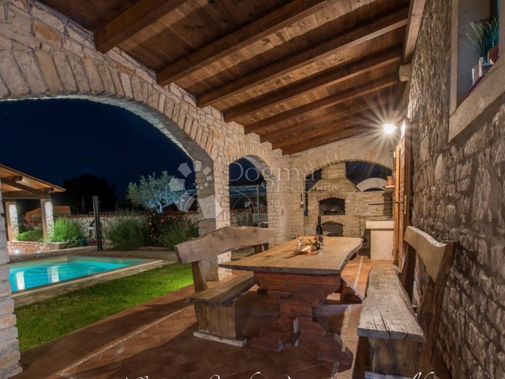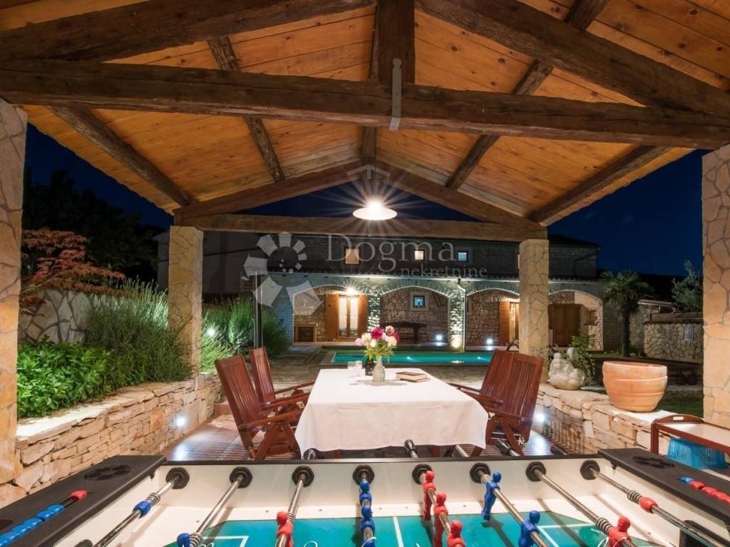 ISTRA, JURŠIĆI - Renovated stone house with 2 residential units, a swimming pool and a sand playground with a net for volleyball, badminton and other sports located on more than 1200 m2 of land, 9 kilometers from the sea! The entire property, with its size and amenities, provides an exceptional feeling of comfort throughout the year. The total living area of ​​184 m2 evenly divided into 2 duplex apartments consists of a total of 2 living rooms, 2 kitchens and 2 toilets on the ground floor, and 4 bedrooms and 2 bathrooms on the first floor. Although the apartments have separate entrances from the back of the house, they are connected from the front by a large shared covered terrace with a fireplace for barbecue, in front of which there is a 24 m2 swimming pool and an additional covered terrace. In addition, the property contains a lot of greenery, on one part of which there is also a playground with a net intended for various sports, which gives this property as a whole an additional dimension and content for enjoyment. The house is equipped with PVC carpentry with mosquito nets, ceramic tiles and laminates, while for heating and cooling, air conditioners are used on the first floor, and on the ground floor, one apartment has a stove for heating, and the other has a beautiful fireplace that gives the feeling of comfort as if you were in a tavern. It remains furnished and is immediately ready to enjoy all the comfort it offers, both privately and for rental purposes. For more information and viewing of the property - Contact: Filip Pandurić Licensed agent +385 99 337 5980 filip.panduric@dogma-nekretnine.com ID CODE: IS1518356 Filip Pandurić Agent s licencom Mob: 099/337-5980 Tel: 052 645 444 E-mail: filip.panduric@dogma-nekretnine.com www.dogma-istra.com
