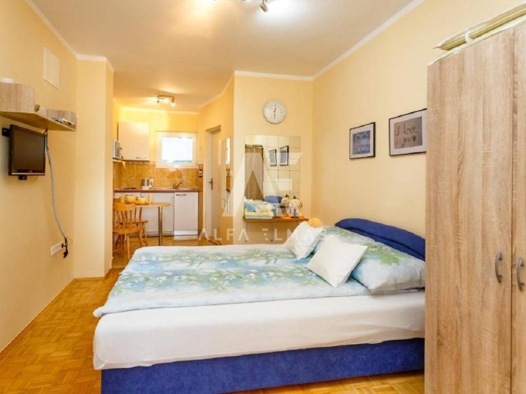 Malinska, a beautiful Mediterranean house with five apartments built in 1985 and completely renovated in 2019. The Mediterranean house 100m from the sea has a living area of ​​243m2 and is located on a plot of 562m2. The house has a ground floor and two floors. In the basement of the house there is a studio apartment consisting of a kitchen, a living room combined into one room, a bedroom and a covered terrace. On the ground floor there is an apartment with a living room, kitchen, bathroom and covered terrace. Three apartments, each with its own entrance, consist of a hallway, two bedrooms, kitchen, dining room, bathroom, toilet and a covered terrace with a wonderful view of the sea and the entire Kvarner bay! The equipment of the Mediterranean house includes high-quality ceramics, PVC carpentry, parquet floor coverings, high-quality sanitary ware, TV, air conditioners. The environment itself is beautifully decorated with Mediterranean plants and palm trees, on the garden plot there is a gazebo with a barbecue, a wooden house and a vegetable garden. The house is located only 100m. from the sea, beach, promenades, shops, restaurants and other amenities. The documentation is in order.