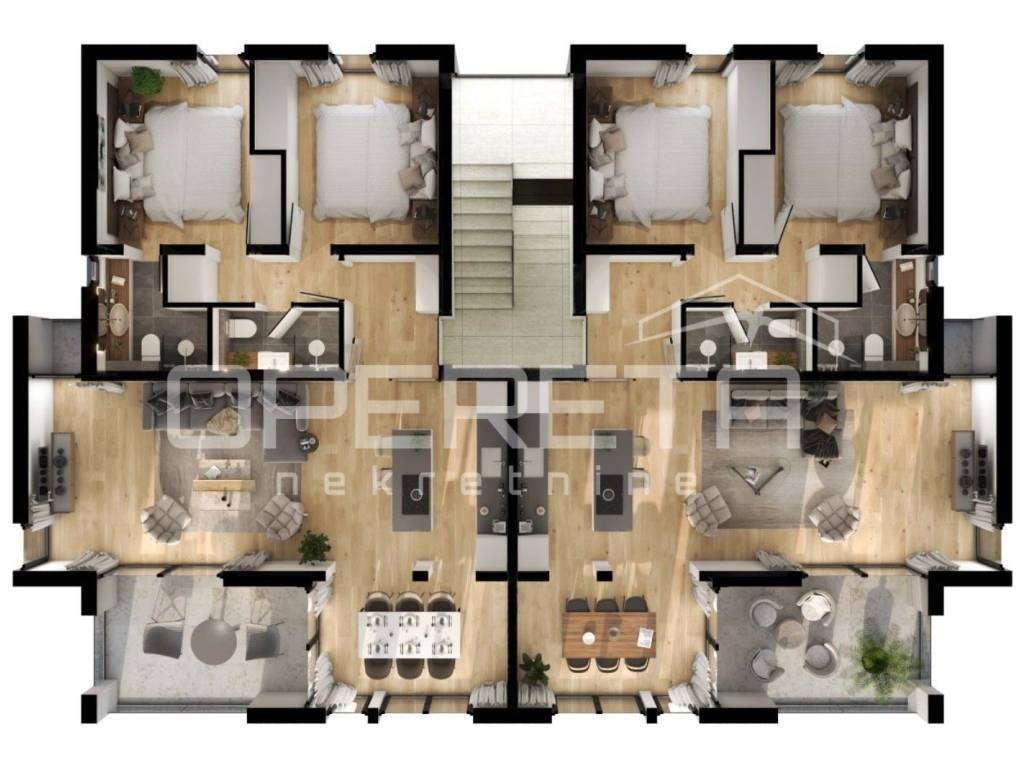Residents have their own parking space, and the quality of construction is evident in every detail – from advanced thermal and acoustic insulation, aluminum joinery with modern sliding systems, underfloor heating, to aesthetically designed exterior. The outdoor area is enriched with Mediterranean plants, an automatic irrigation system, and subtle evening lighting.