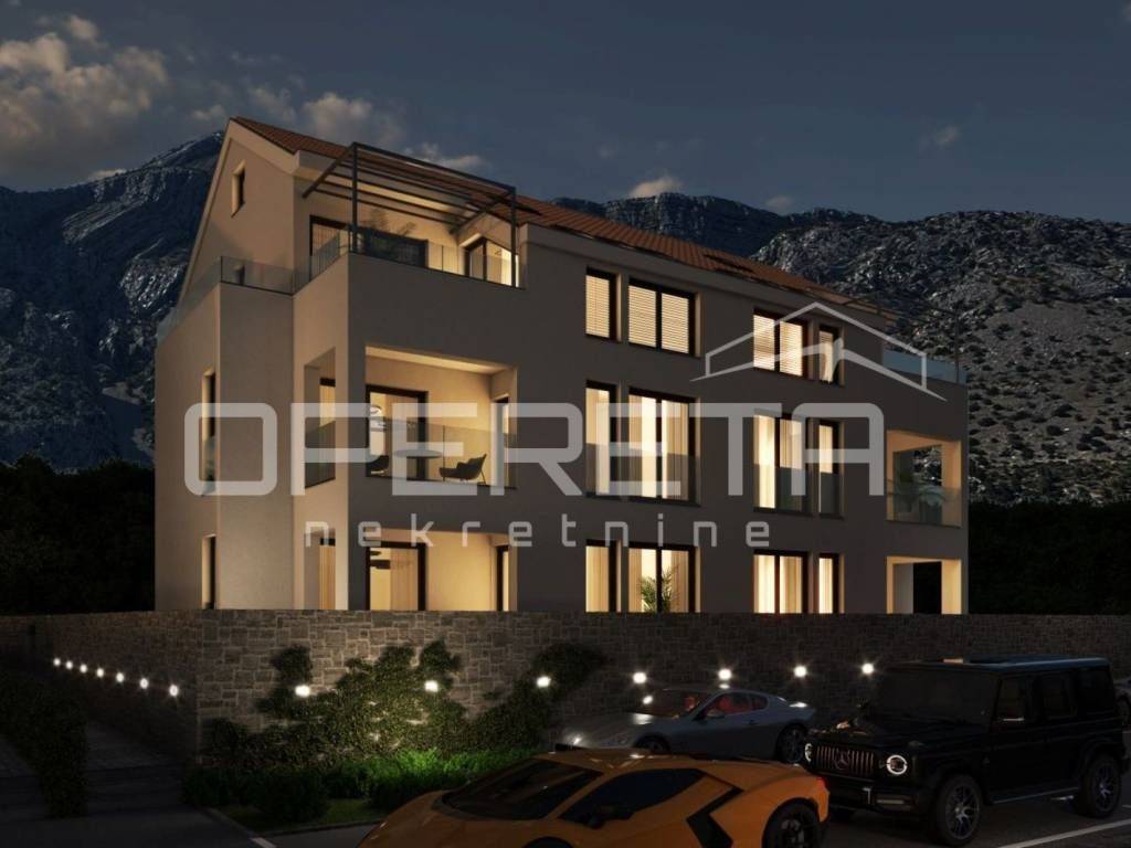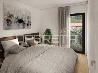 In a peaceful part of Orebić, a modern apartment in a newly built residence combines comfort, contemporary design and a touch of Mediterranean charm. With a total surface of 89 m², the apartment is located on the first floor and faces south, ensuring plenty of natural light throughout the day. The spacious living room is seamlessly connected to the kitchen and dining area, creating a harmonious space perfect for daily life and gatherings. The apartment offers two bedrooms, one with an en-suite bathroom, while the loggia and terraces provide an ideal setting for outdoor relaxation.