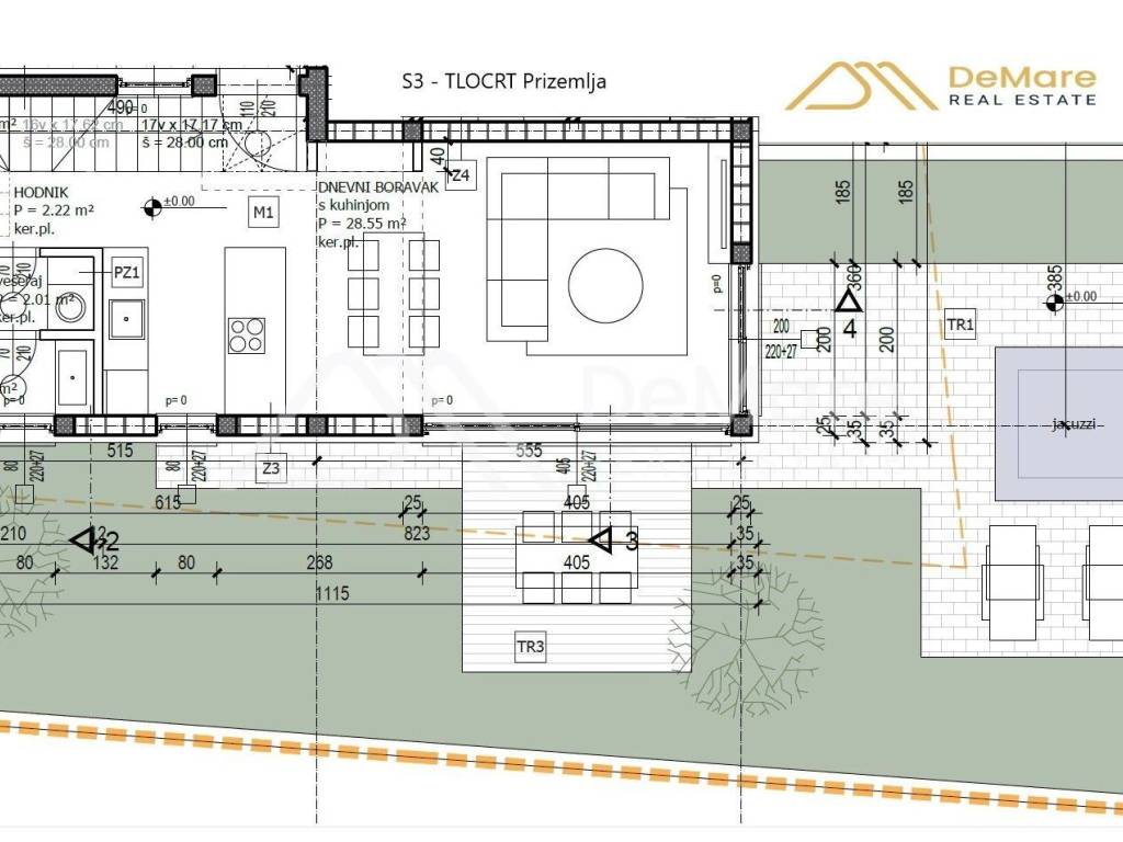 - Living room with kitchen and dining room (28.55 m2)
