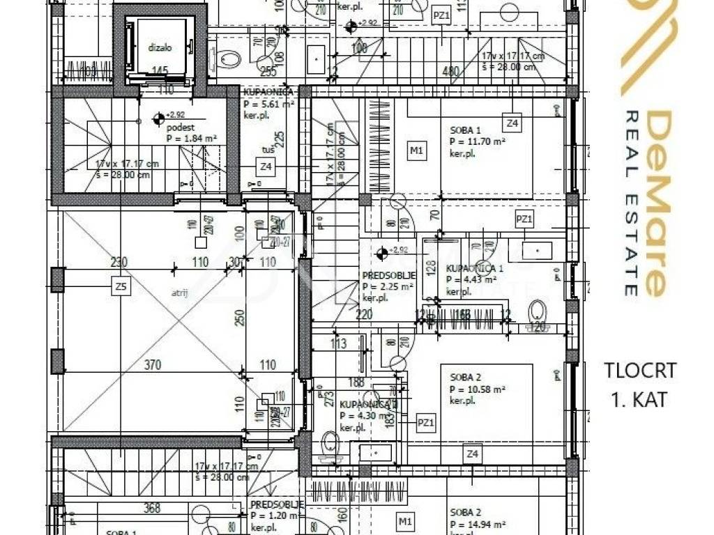 - Two bathrooms (4.30 m2 and 4.43 m2).