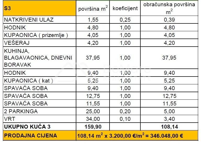 On the 1ST FLOOR there are: - Hallway / 9.40 m2 - Three bedrooms / 9.40 m2, 12.75 m2 and 11.55 m2 - Bathrooms / 5.25 m2 The interior living space of the apartment occupies 99.74 m2. The apartment also has a garden with a terrace (34 m2), as well as 2 outdoor parking spaces (2x 12.50 m2). The total usable area of the apartment is approx. 108.14 m2. For heating and cooling the apartments, air conditioning units are installed in all rooms, and underfloor heating is installed in the bathrooms. High-quality PVC joinery with electrically operated shutters and built-in mosquito nets has been installed. For all additional information and a presentation of the property, please contact us!