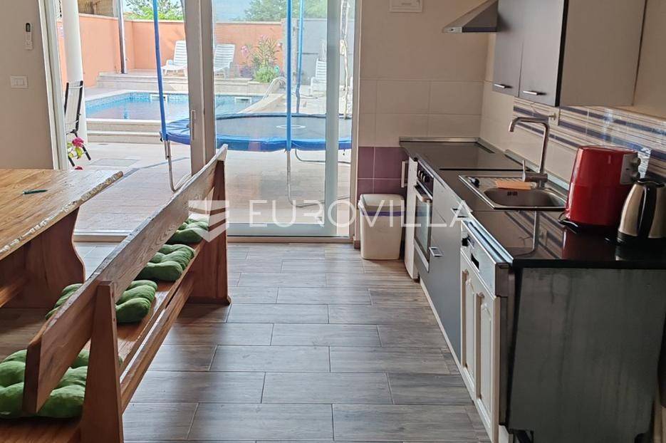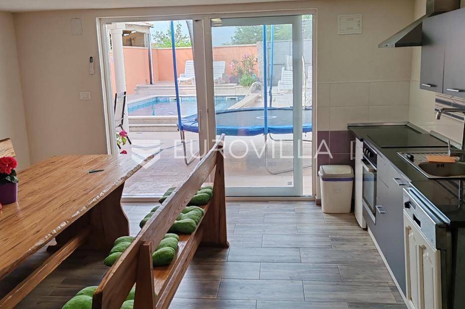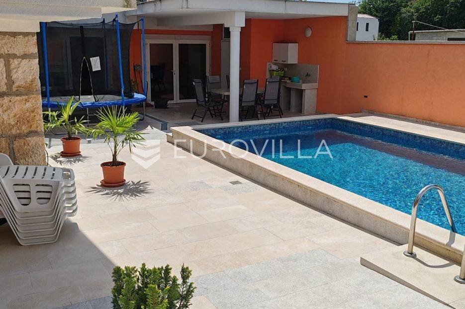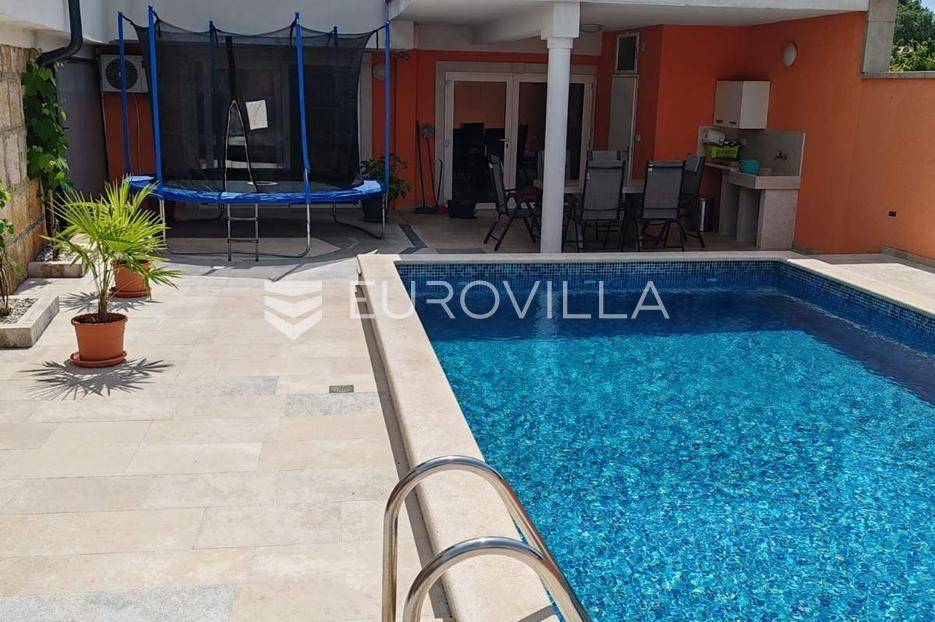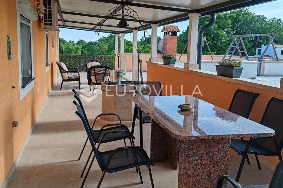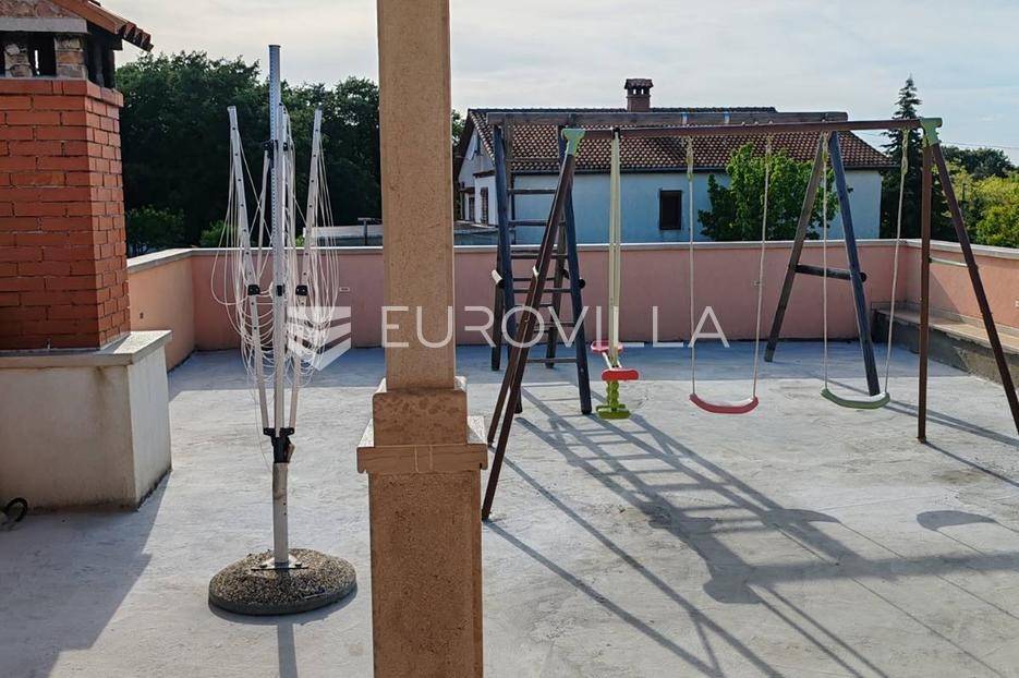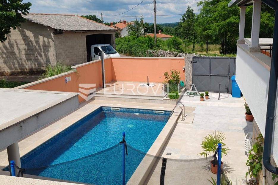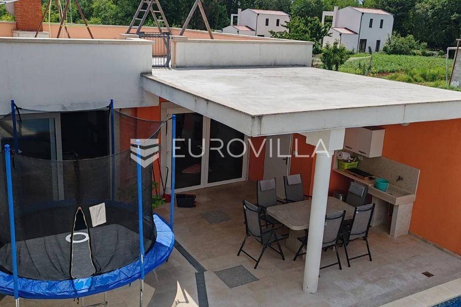 Istra, Tinjan, kuća površine 350 m2 na 536 m2 parcele s tri spavaće sobe, bazenom i terasom.Kuća se sastoji od više etaža, s tri spavaće sobe i tri kupaonice, otvorenim dnevnim boravakom, kuhinjom i blagovaonicom te podruma i prostora za igranje.Vanjski prostor nudi bazen za ljetne dane, natkrivenu terasu s roštiljem za okupljanja te uređeno dvorište s prostorom za igru.Za više infromacija stojimo na raspolaganju