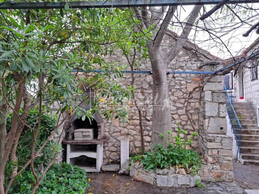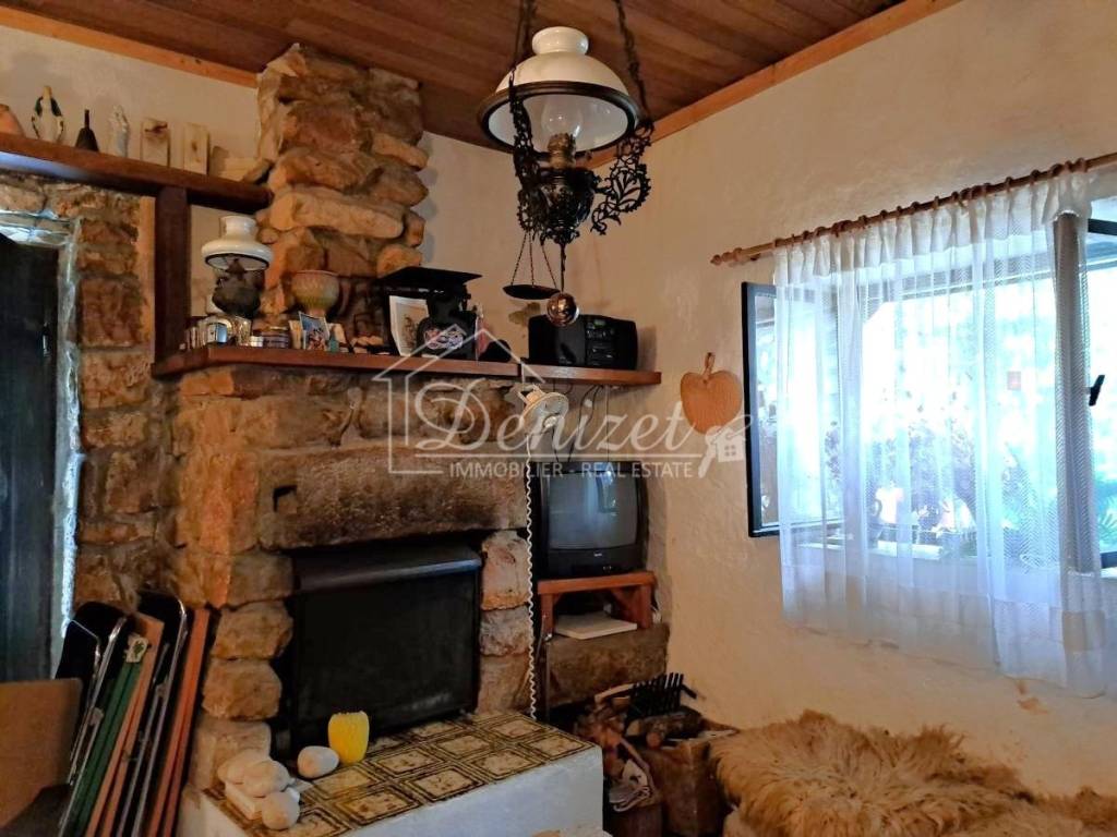 Opposite the main house is the second stone house, consisting of a ground floor and a roof structure. The interior is unfinished and is currently used as a tool shed and storage room, with a floor area of 30 m². Next to it is a courtyard of 37 m², currently used as a terrace with a traditional outdoor fireplace (komin), surrounded by greenery – an ideal spot for hot summer days.
