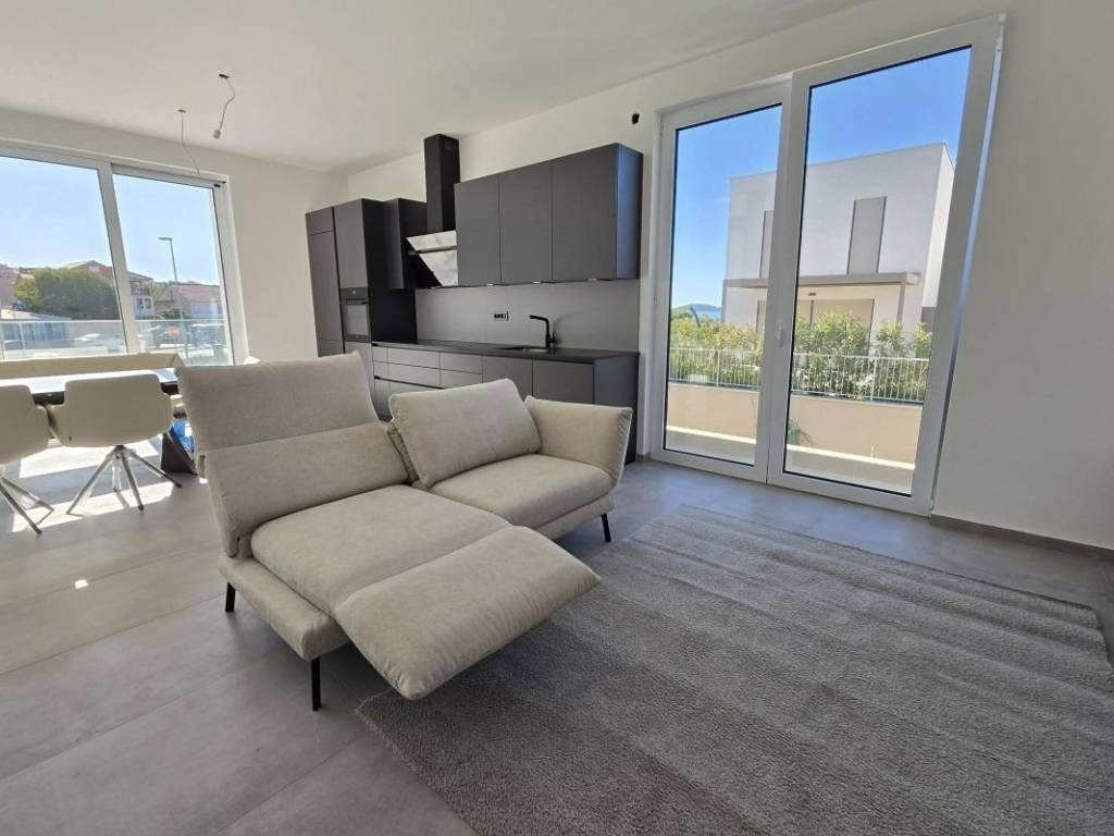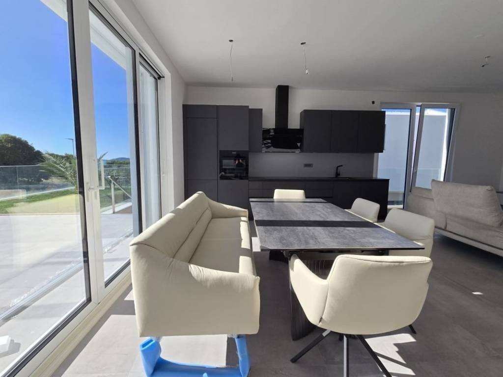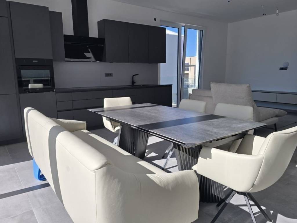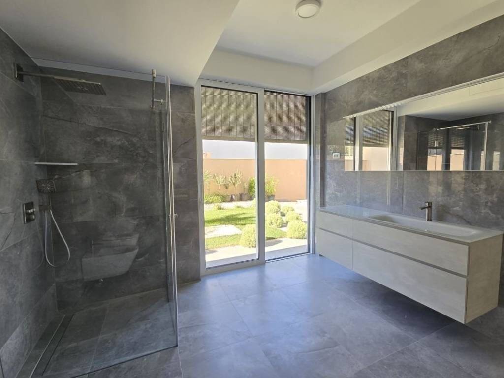 Spacious apartments for rent in the Brodarica area of Šibenik, just 150 meters from the beach. The apartments are of the same quality and layout. Both apartments are located on the ground floor of a new residential building and each has a living area of about 123 m2. Each consists of two bedrooms, two bathrooms and a large open-concept room that combines the kitchen, dining room and living room. Each also has a storage room and a technical room. The apartments have a large separate terrace of about 40 m2, each has a private fenced garden of 120 m2 and its own garage. The apartments are rented exclusively for long-term stays. The rental price for a partially furnished apartment is €1,800 and for a fully furnished apartment, with all appliances, is €2,200