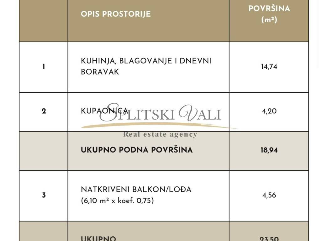Ekskluzivno posredujemo u prodaji više stambenih jedinica u novonastajućem kvartu smještenom na atraktivnoj lokaciji na Duilovu.Ovaj projekt nudi modernu arhitekturu, visokokvalitetne materijale i pažljivo osmišljene stambene jedinice koje zadovoljavaju sve potrebe suvremenog stanovanja.Lokacija pruža idealno mjesto za obiteljski život, s blizinom svih potrebnih sadržaja kao što su škole, vrtići, trgovine i javni prijevoz. Uz to, prekrasan pogled na more i prirodu čini ovaj projekt savršenim izborom za one koji traže miran i ugodan životni prostor.Ovaj projekt ponosno ističe inovativnu arhitekturu sa dosad neviđenim dizajnom pročelja koja su pažljivo izvedena kako bi ponudila ne samo funkcionalnost, već i estetsku privlačnost.Svaka zgrada ima podzemnu etažu u kojima su smještena parkirna mjesta. Izlaz i ulaz u podzemnu garažu nalazi se na sjevero-istočnoj strani objekta. Također zgrada ima dizalo iz podzemne garaže pa sve do nadgrađa. Energetski certifikat zgrada je projektiran za A+ razred.Koncept interijera predstavlja savršen spoj modernog dizajna i prirodnih materijala, stvarajući prostor koji je istovremeno elegantan i ugodan za život.U ponudi imamo više stanova različite kvadrature, orijentacije i cijene.Završetak gradnje očekuje se sredinom 2027. godine, a plaćanje je u fazama.ZGRADA "Orišac 2"-STAN 22Stan 22 nalazi se na razini drugog kata te se prostire na 23,50m2 netto površine, 18,94 m2 unutarnje površine.Sastoji se od dnevnog prostora s kuhinjom i blagovaonicom,kupaonice te balkona od 6,10 m2.Za razgovor o samom projektu te o ponudi stanova lijepo vas molimo kontaktirajte nas na +385 993202222 (Antea).Kupac plaća agencijsku proviziju.Razgled nekretnine moguć je isključivo uz potpisani Ugovor o posredovanju, a što je u skladu sa Zakonom o zaštiti podataka i Zakonom o posredovanju i prometu nekretninama.