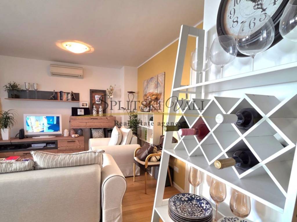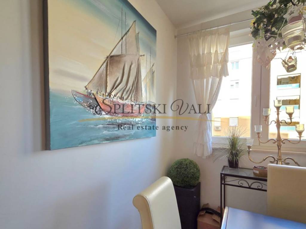 Ekskluzivno posredujemo u prodaji dvosobnog stana s pogledom na more, koji se nalazi na Žnjanu.Ovaj atraktivan dvosoban stan površine 62 m² smješten na 1. katu stambene zgrade u mirnom i traženom kvartu Žnjan 2, sastoji se od: Dvije udobne spavaće sobe, prostrane kupaonice, otvorenog dnevnog boravka s kuhinjom i blagovaonicom, te lođe s prekrasnim pogledom na more,kao i iz svake sobe.Stan je vrlo funkcionalnog rasporeda, dobro osvijetljen i održavan. Smješten je u mirnom okruženju, idealnom za obiteljski život ili kao investicija za turistički najam.Uz stan dolazi i garažno parkirno mjesto, što je izuzetna prednost u ovom dijelu grada, nalazi se u garaži samo par koraka od lifta koji vas vodi do kata gdje su ulazna vrata također u neposrednoj blizini. Ovaj dio Žnjana spada u mirnu i modernu gradsku četvrt s brzom povezanošću do svih važnih sadržaja – trgovina, škole, vrtića, plaže i javnog prijevoza.Stan se prodaje potpuno namješten, s kvalitetnim i očuvanim namještajem – idealno za useljenje bez dodatnih ulaganja.Za sve ostale informacije lijepo vas molimo kontaktirajte +385991600440 Maja.Razgledavanje ove nekretnine moguće je isključivo potpisivanjem Ugovora o posredovanju.