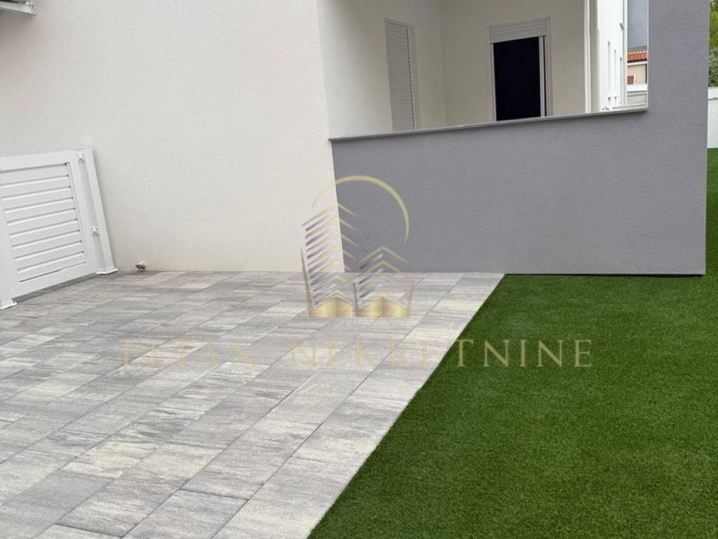 An apartment is for sale on the island of Vir in the Torovi area on the ground floor. The apartment is located in a new building that has 6 residential units. The apartment is 62m² in size and includes a 92m² yard. It consists of a kitchen with a dining area and living room, a bathroom, 2 bedrooms, and a covered terrace. Underfloor heating is installed in the bathroom, and the apartment has an air conditioning unit for cooling and heating. The apartment has video surveillance and an intercom, and there is parking in front of the building.
