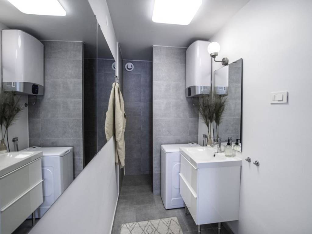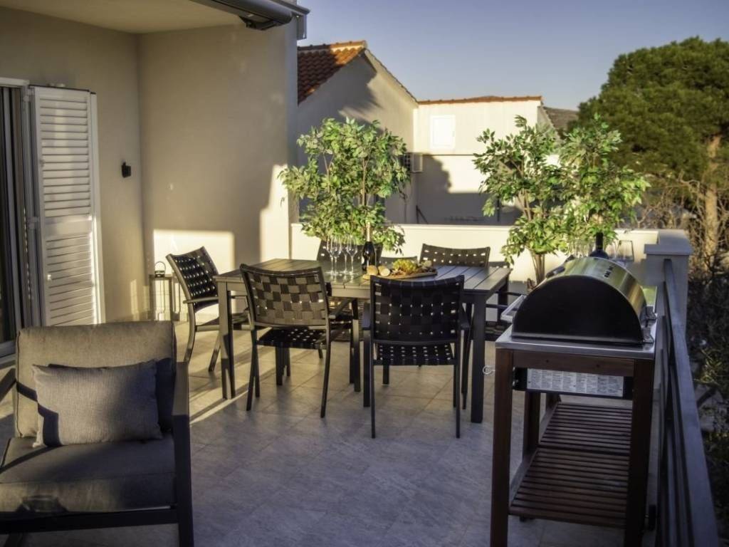 A two-bedroom apartment located on the middle floor of the building offers a functional and well-arranged space that includes an entrance area, a living room with a kitchen and dining area, two bedrooms and a bathroom. The interior area of ​​the apartment is 57 m², and the living area opens onto a spacious terrace with a beautiful, open view of the Rogoznica Bay.   The terrace is partially covered (12 m²) and uncovered (36 m²), which allows for a pleasant stay outdoors throughout the day. The total usable area of ​​the apartment is 74 m².   The apartment is sold fully furnished and ready to move in immediately, without the need for additional investments. An established tourist rental is already in operation, which makes this property an excellent opportunity to continue your business or for private use. One parking space is included in the price, with the option to purchase an additional one, and tenants also have access to a shared roof terrace with a panoramic view of the sea.   The building consists of three floors and is located only 150 meters from the beach and the town center, which gives the apartment additional value as a comfortable home or an investment in tourist rental.