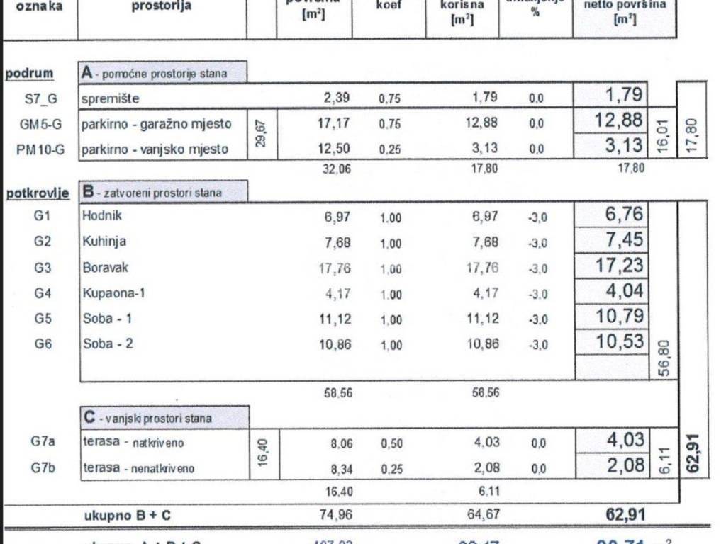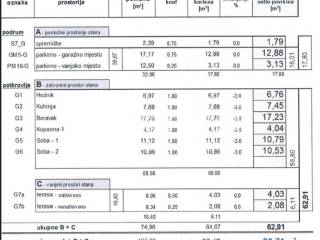 Prodaje se stan (zatvorenog prostora 56,80m2) novije gradnje u "Vilama Gundulić" koji se sastoji od ulaznog hodnika, kuhinje s blagovaonicom, dnevnog boravka s izlazom na natkrivenu terasu površine 8,06m2(obračunski 4,03m2), dvije spavaće sobe, jedna soba ima izlaz na nenatkrivenu terasu površine 8,34m2 (obračunski 2,08m2) te kupaonice.