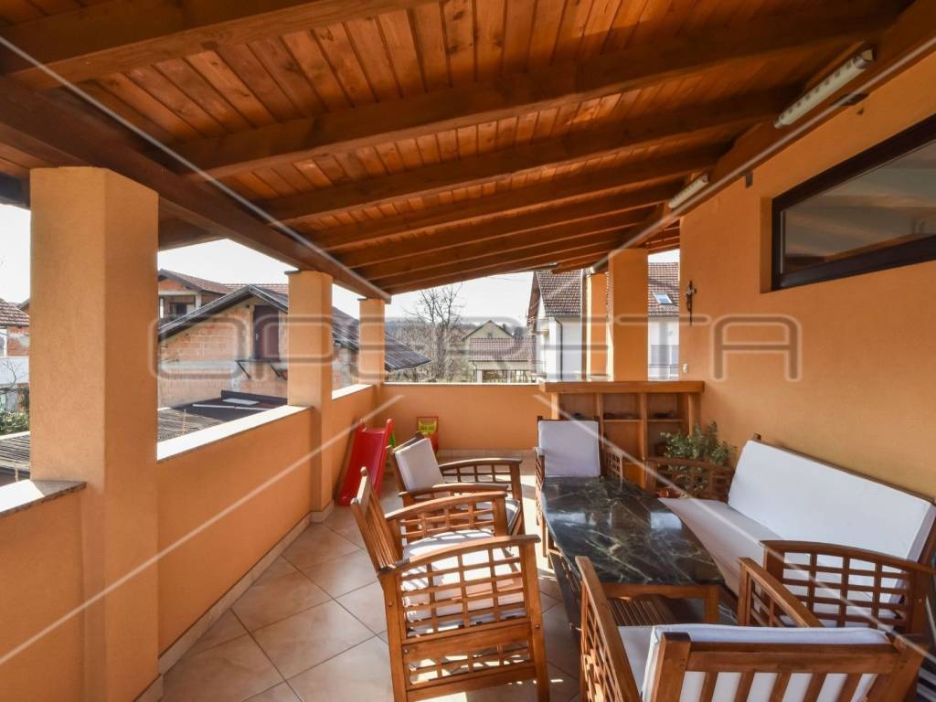 PRODAJA, KUĆA, SESVETSKI KRALJEVEC, Ulica Zeleni vijenac, kompletno uređena i namještena kuća na parceli od 244 m2, trenutno koncipirana kao dva odvojena stana. Plinsko etažno grijanje, vlastita brojila, odlična pozicija, mir, blizina javnog prijevoza, škole... Idealno za veću obitelj ili dvije obitelji, isto tako za nekoga tko bi htio imati ured, radnju ili neki tihi obrt u sklopu kuće. Dokumentacija uredna.