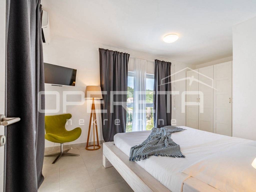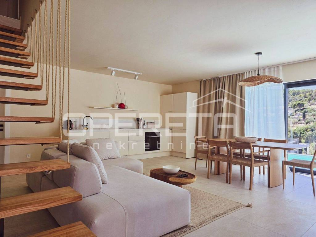 Vila je opremljena luksuznim namještajem – unutarnji od masivne hrastovine, a vanjski od tikovine. Sve prostorije, uključujući dnevni boravak, opremljene su Smart TV-ima. Kuhinja je izrađena po mjeri i opremljena vrhunskim Bosch aparatima, dok su posuđe i kupaonski elementi renomiranih brendova kao što su WMF i Villeroy & Boch. Bazen dužine 9 x 4 metra smješten je u uređenoj mediteranskoj okućnici i pruža savršen ambijent za opuštanje.