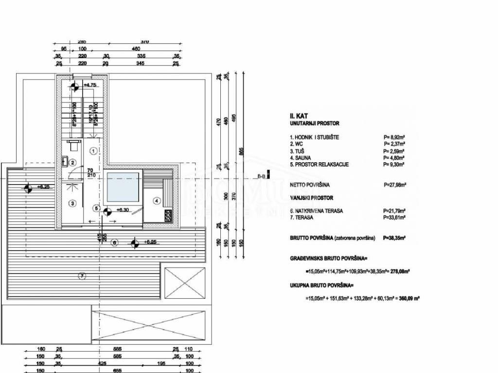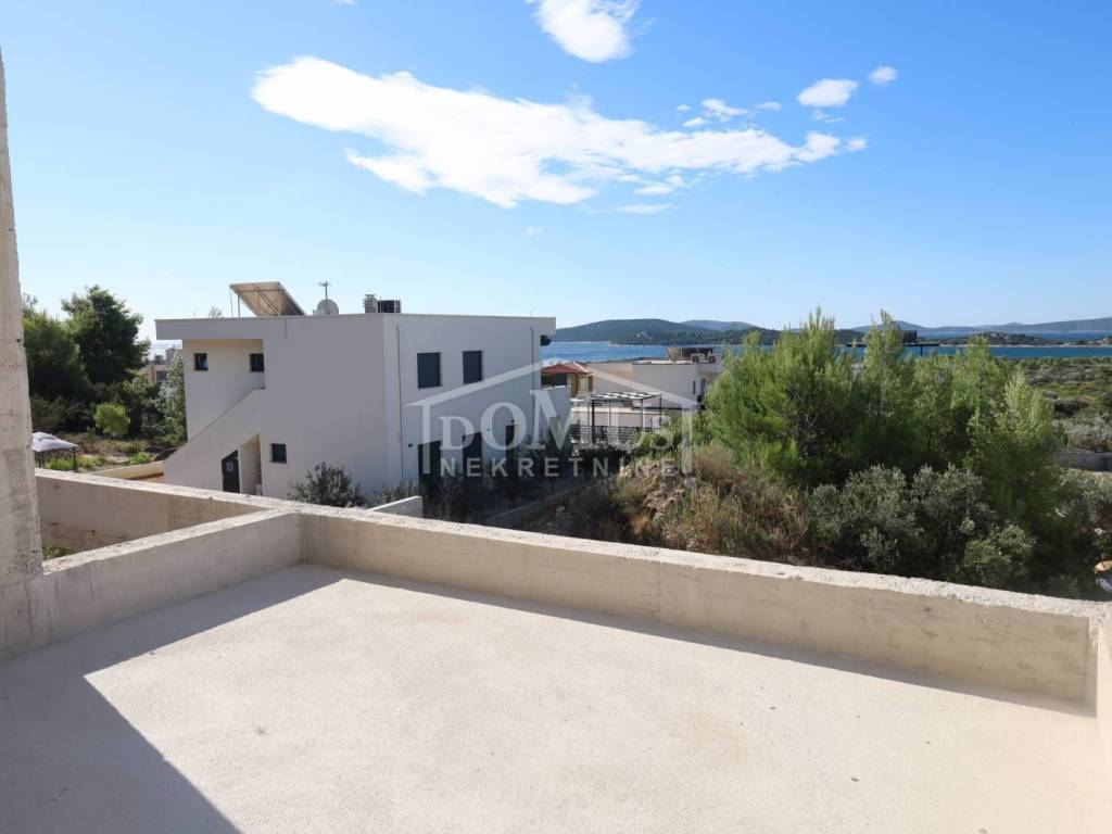 Newly Built – Beautiful Family House with Modern Architecture, Functional Layout, Pool, and Panoramic Sea View. The house is situated on a 760 m² plot and has three floors (ground floor + 1st floor + 2nd floor), with a total usable area of 278.08 m². The ground floor consists of an entrance area, bathroom, one bedroom, storage room, and a spacious living room with kitchen and dining area, with access to a large covered terrace, garden, and 47 m² pool. Internal stairs lead to the 1st floor, where there is a hallway and three bedrooms, each with its own bathroom, and two terraces. The second floor is designed as a relaxation area, with a sauna, shower, WC, installation for a jacuzzi, and a spacious rooftop terrace offering a stunning sea view. The yard is fenced, with a garden and parking space. The house is located 900 m from a maintained beach and 1,400 m from the town center.
