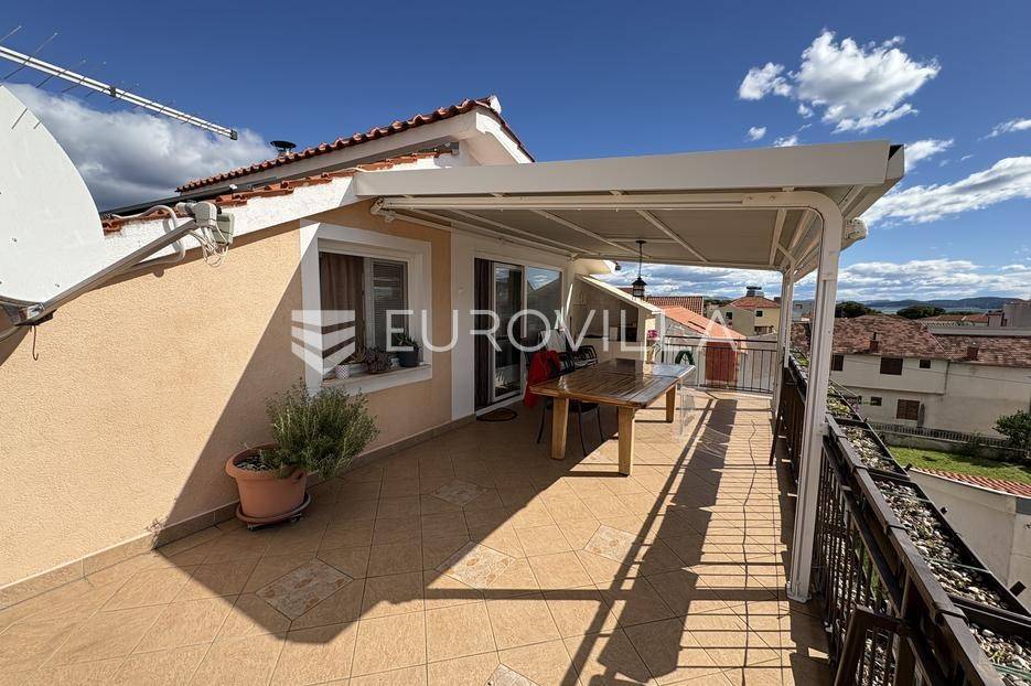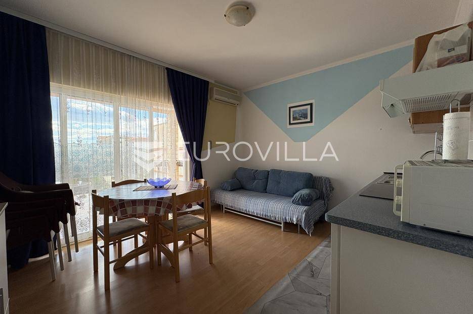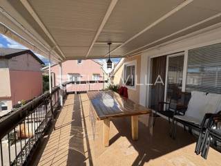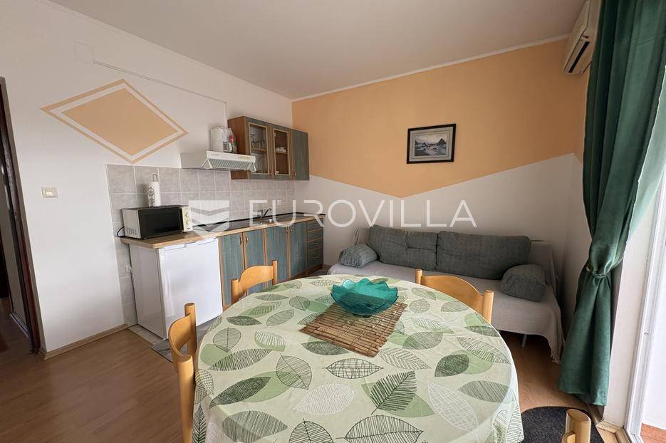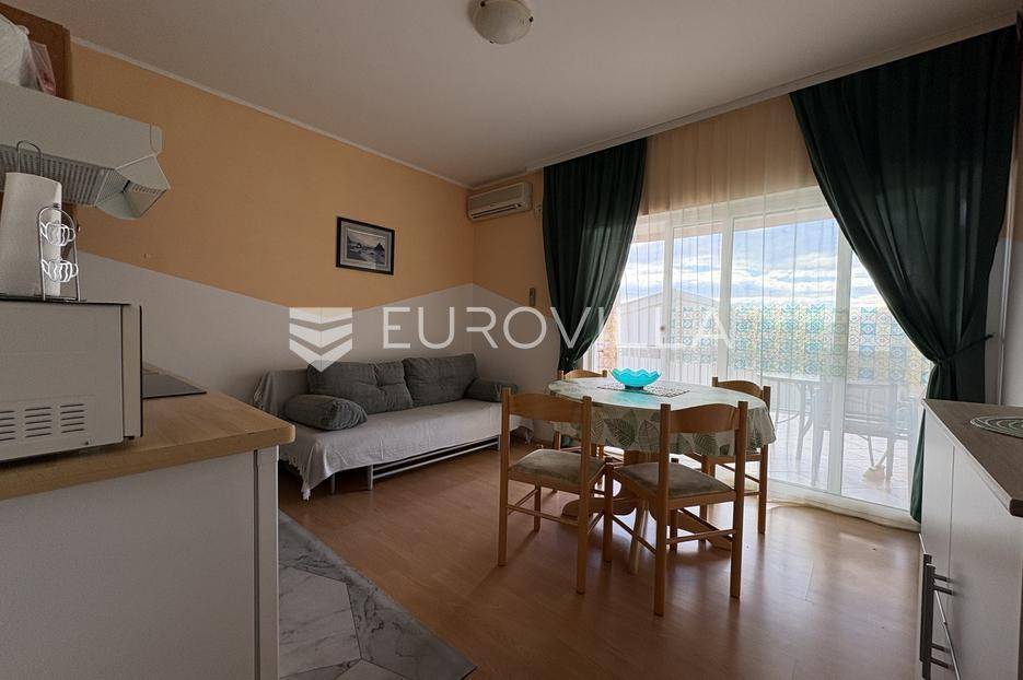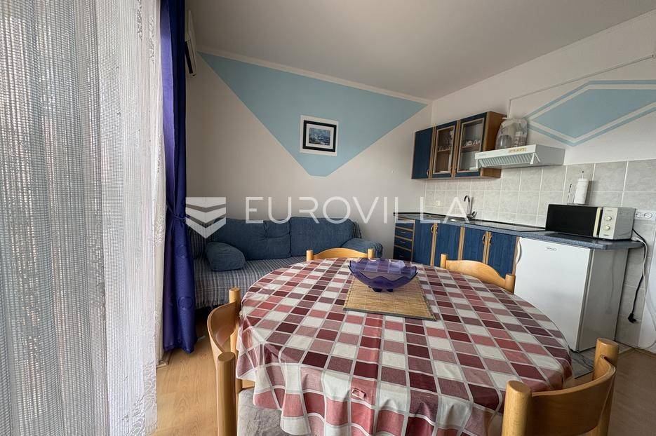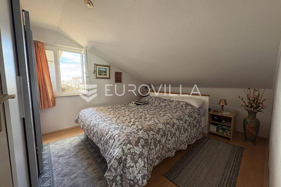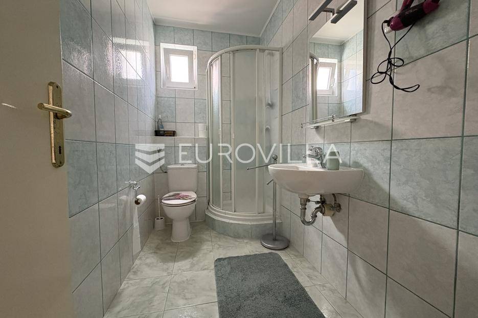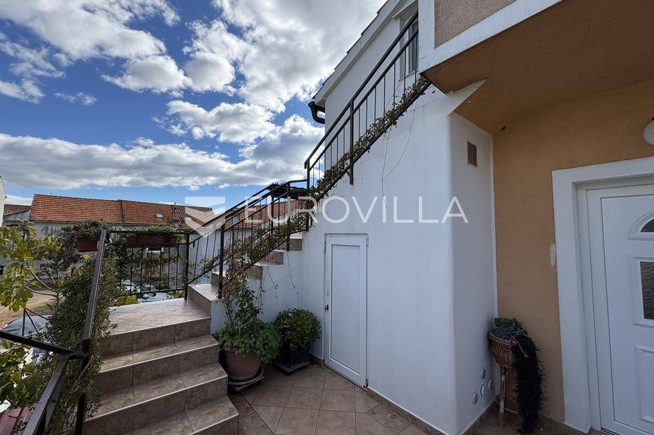 Kuća je nadograđena i renovirana 2007. godine.Sastoji se od prizemlja u kojem se nalaze dva apartmana, svaki s jednom spavaćom sobom, dnevnim boravkom s kuhinjom i blagovaonicom, te kupaonicom. Apartmani imaju zasebne ulaze. Vanjskim stepenicama dolazi se na prvi kat gdje su još dva apartmana iste površine i rasporeda kao i apartmani u prizemlju, te uz to svaki apartman ima svoju terasu. Na drugom katu nalazi se veliki stan s dvije spavaće sobe, prostranim dnevnim boravkom, kuhinjom s blagovaonicom, te velikom terasom s pogledom na more.Kuća se prodaje potpuno opremljena i spremna za useljenje, ili nastavak uspješne djelatnosti iznajmljivanja. Kuća je dobro opremljena, svi apartmani su klimatizirani, te su na krovu postavljeni solarni paneli za proizvodnju električne energije.Sve ostale informacije na upit.