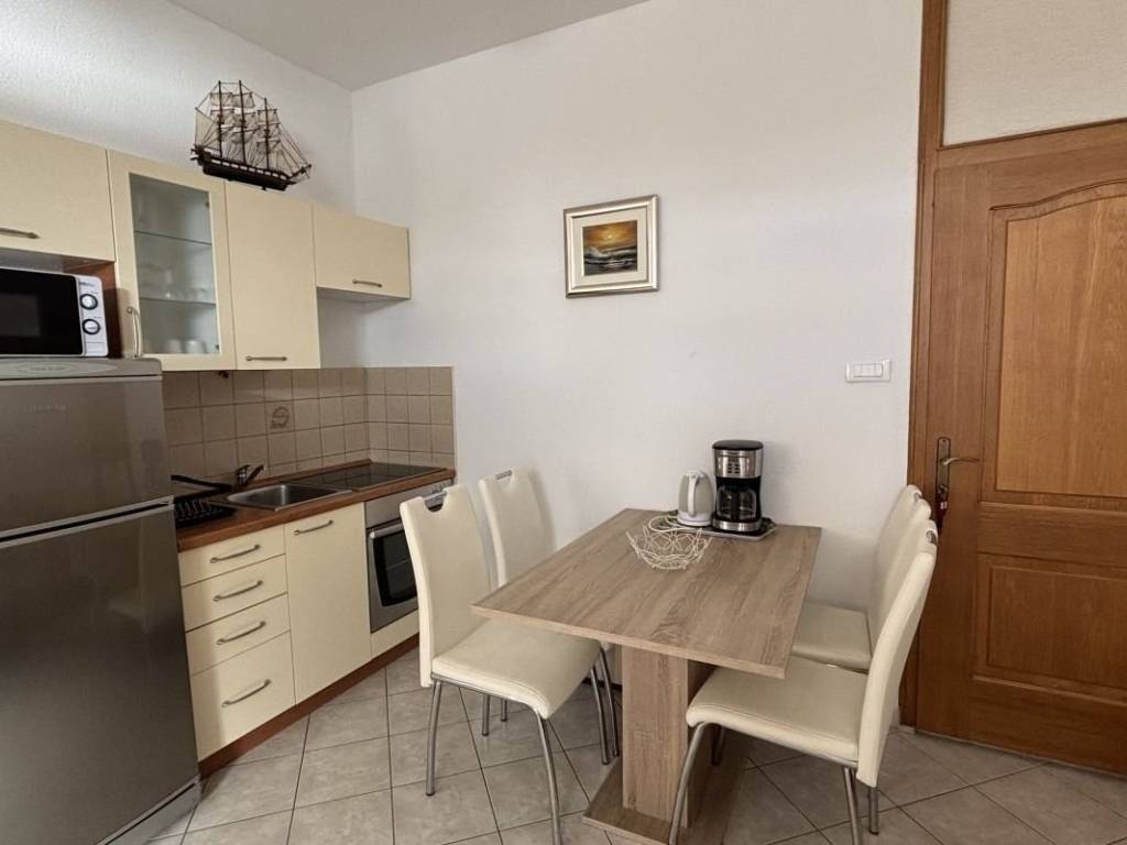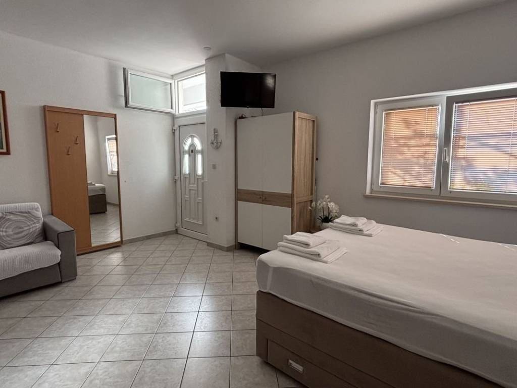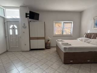 A spacious studio apartment with sea view near Trogir, available for long term rent. The apartment is located on the ground floor of an apartment building in a quiet location. The orientation of the apartment is southwest, which ensures plenty of natural light throughout the day and a pleasant airiness of the space. The apartment covers some 45 m² of living space, and it also has a terrace in front of the apartment of some 10 m² with a view of the sea and the surrounding area. The apartment is fully furnished and equipped and is rented as such. Heating and cooling are regulated by air conditioner, and the apartment also has an outdoor parking space, which is a great convenience. It has its own entrance and the right to use a laundry room. In the immediate vicinity of the building there are all the necessary facilities for a pleasant and quality everyday life – shops, bakeries, cafes, restaurants and other services. The location of the facility ensures excellent connections to the center of Trogir and the surrounding area, while the position itself in a quiet neighborhood provides the ideal balance between urban life and privacy.