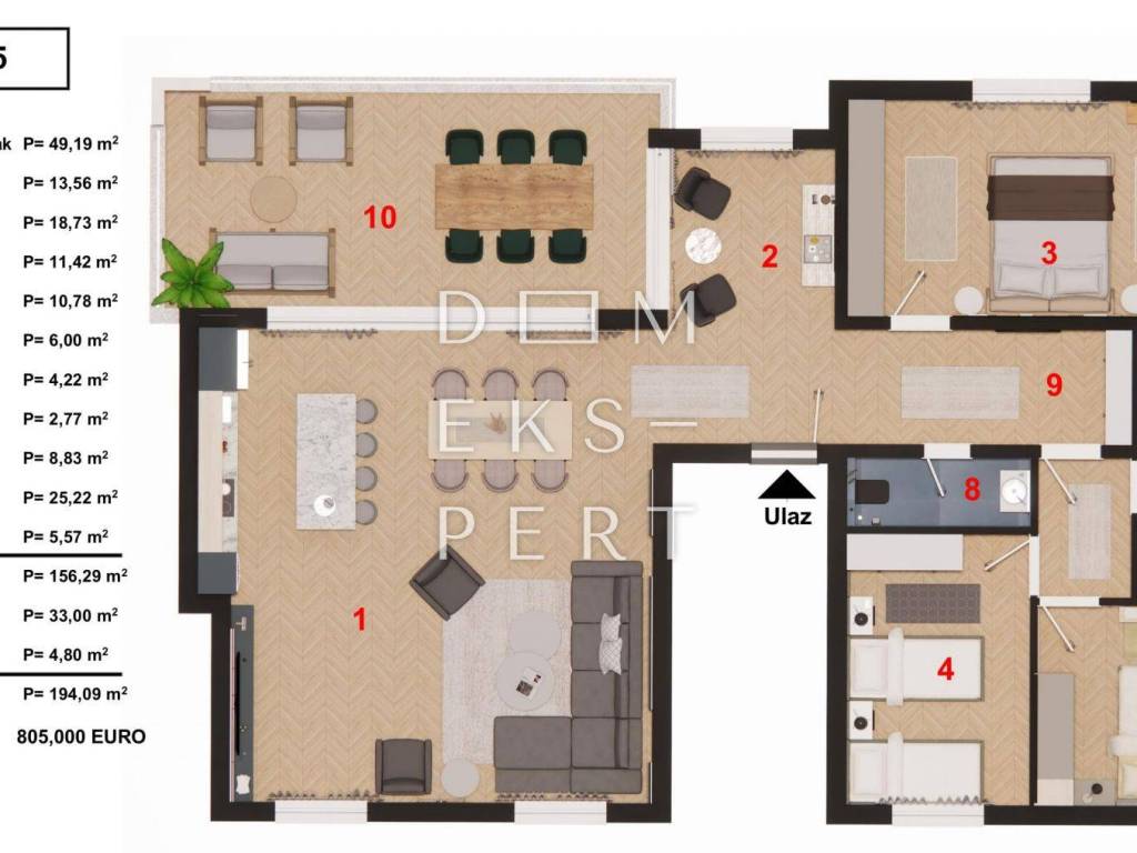 - total area including terraces, two parking spaces, and storage: 194.09 m2