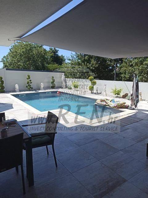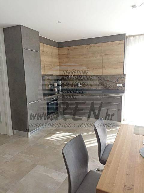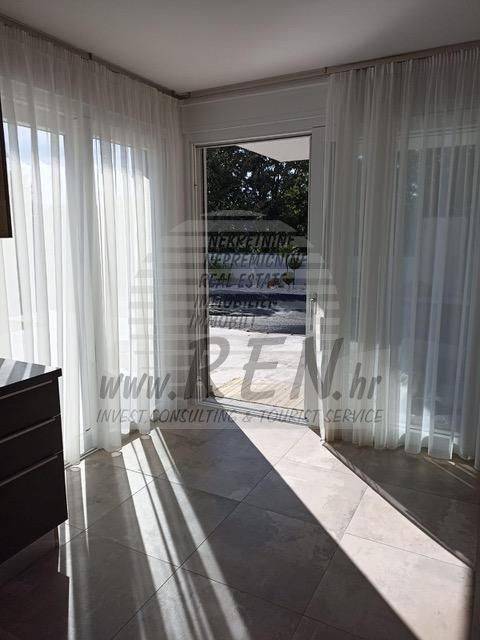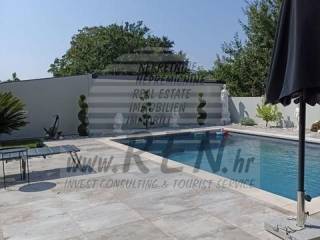 An apartment for sale in a good location in Novigrad, 1,000 m from the sea and a nicely decorated terrace, and 1,200 m from the city center. The apartment is located on the ground floor of the building and has 79 m2 gross (69 m2 net square footage). The apartment consists of an entrance hall, a bathroom, a storage room, 2 bedrooms and an open space where there is a kitchen with a dining room and a living room with access to a covered terrace and a garden of 180 m2. The garden is beautifully decorated and every detail is carefully planned. In the garden there is a heated pool with an electrolysis system (salt water in the pool). In the garden there is also a solar shower and a large closed storage room of 24 m2 in which there is an engine room, a swimming pool and a storage room. The garden has an automatic grass irrigation system and is nicely fenced and offers a lot of privacy. The apartment has covered parking of 40 m2 for 4 cars. Each room in the apartment has air conditioning (3 in total), and the bathroom has underfloor heating. The apartment can be used for residential or tourist purposes.