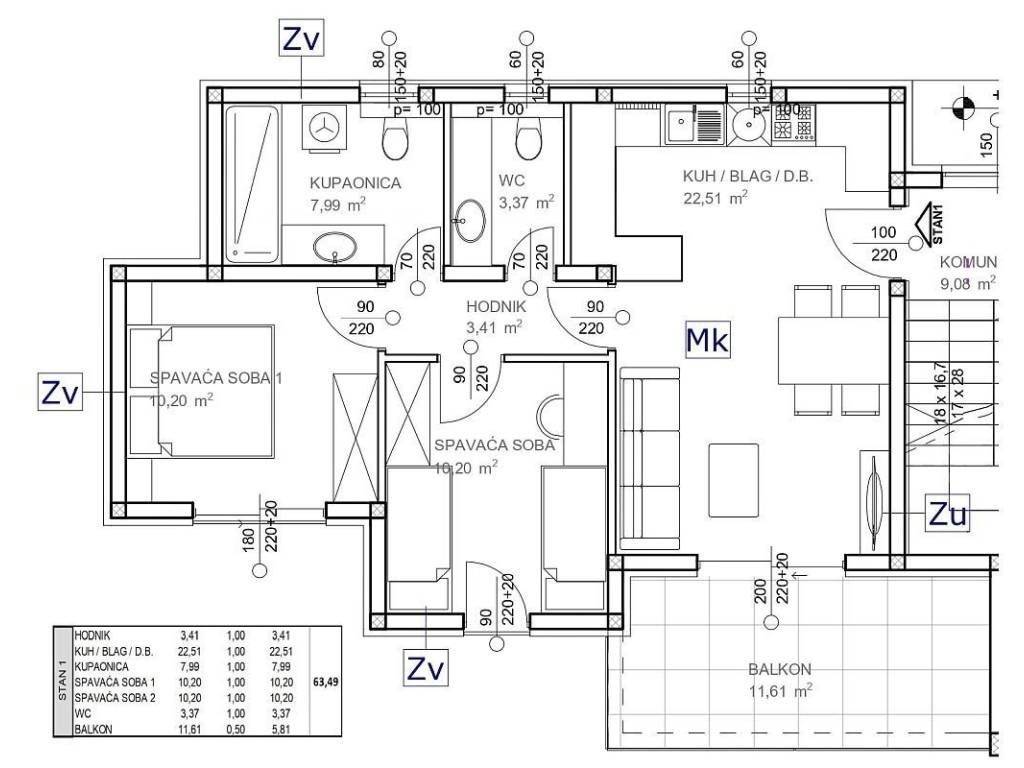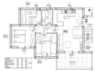 For sale is a ground floor apartment in a newly built building located in a small area near Šibenik.   The apartment has a net area of 63.49 m² and consists of two bedrooms, a kitchen, a living room, a dining area, a bathroom, a separate toilet, and a balcony. It also includes a garden of 55 m² and a parking space of 13 m².   The nearest beach is about 300 meters away, and the terrace offers a partial sea view. Restaurants, cafés, shops, and all necessary amenities are located nearby. The completion of construction is expected by the end of 2025.