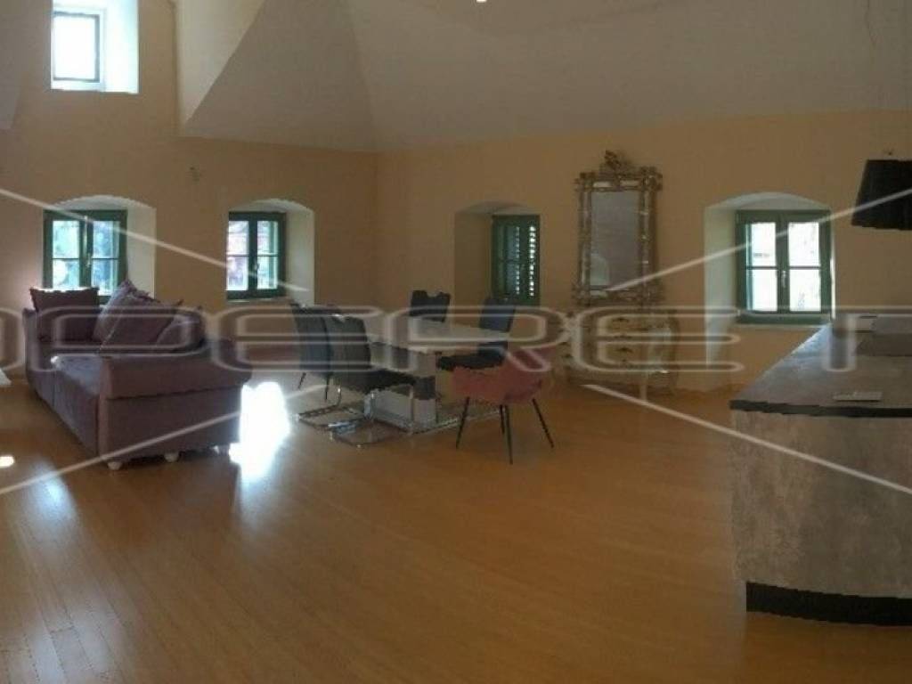 Reconstructed duplex apartment in the center of Opatija, second row to the sea. The usable area of the apartment is 180 m2, the apartment also has a parking space and part of the garden. It is located in an Austro-Hungarian villa and extends through the first floor and a high attic. On the first floor there is an entrance hall, living room with kitchen and a staircase to the attic. In the high attic there is a hallway with stairs, 2 bathrooms, toilet, 2 bedrooms, living room, kitchen with dining area and balcony. It was completely renovated in 2013, taking special care of the preservation of cultural heritage, and high quality materials were used. The balcony is south facing with sea views.