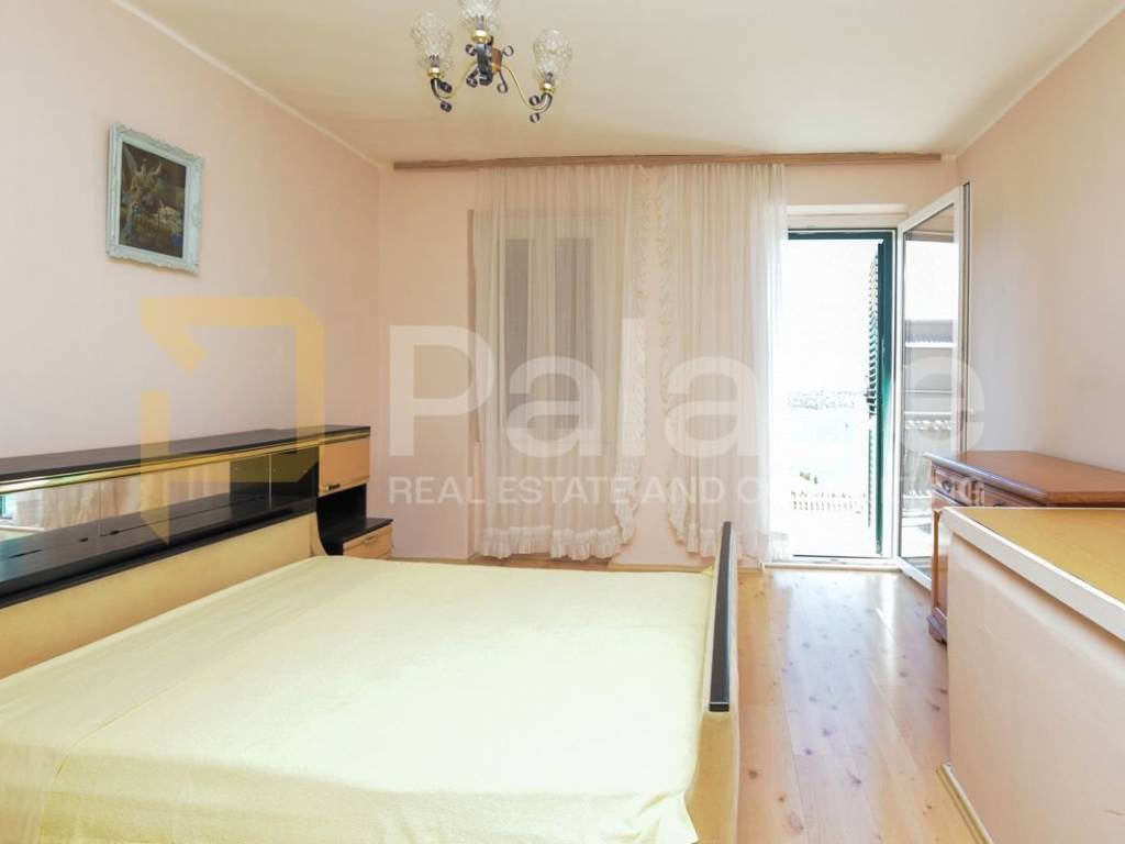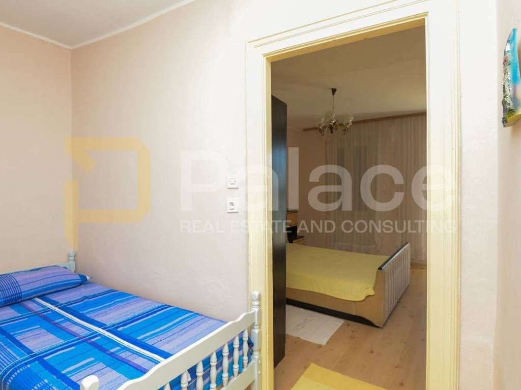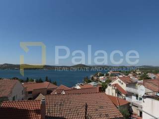 The upper floor is accessed by an internal staircase, where two bedrooms are located. One smaller room facing north and the other larger master bedroom with access to an outdoor terrace, offering a wonderful view of the entire Šibenik Channel. The perfect small terrace, ideal for enjoyment, is a charming feature of this property.