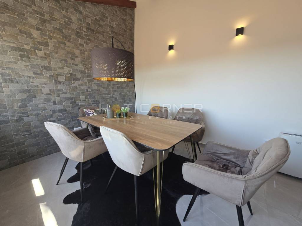 In the very heart of Rovinj, within the picturesque historic core of the old town, lies a rare opportunity to acquire a unique luxury duplex apartment of 60 m². Situated on the second floor of a magnificent stone residence built between 1500 and 1600, the home exudes aristocratic charm, subtly enhanced with contemporary details. Elegant, spiral-shaped wooden stairs of modern design lead to the apartment, blending seamlessly into the building’s historic ambiance.
