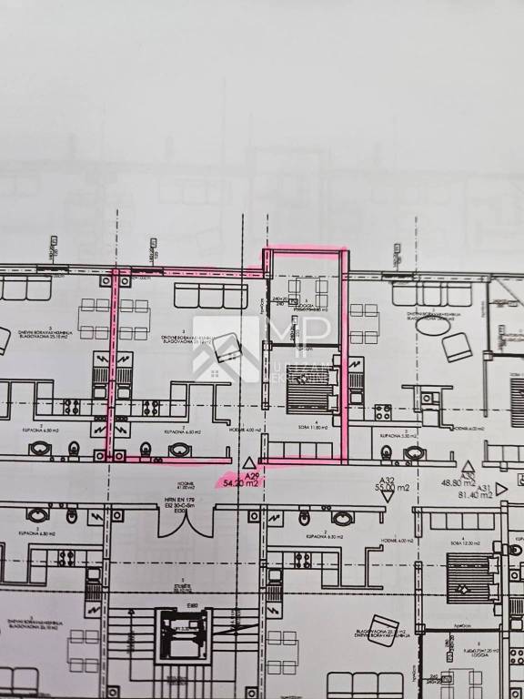 This high-quality new construction project is located in a beautiful, quiet and sought-after location in Pula, in the Veli Vrh area. It is an apartment building with a total of 36 residential units. For sale is an apartment marked "A29" on the third floor, with an area of 54.20 m2, plus an associated parking space in the underground garage with an area of 6.87 m2. The apartment consists of a hallway, bedroom, bathroom, living room with dining room and a loggia. Surface areas: hallway: 4 m2 bedroom: 11.80 m2 loggia: 6.75 m2 living room + kitchen and dining room 25.10 m2 bathroom: 6.50 m2 parking 6.87 x 0.50 = 3.43 m2 Total area: 57.63 m2 There is an elementary school, kindergarten, shop and other important facilities in the immediate vicinity. Distance to the city center is 2.5 km