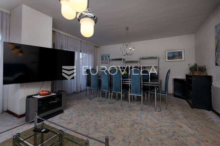 u mirnom i uređenom dijelu Lovrana u najam se daje prostrana dvojna kuća ukupne površine 194.10 m², raspoređena na tri etaže - prizemlje, prvi kat i potkrovlje - s pripadajućim spremištima i dijelom okućnice. nekretnina nudi komfor, funkcionalnost i mirno okruženje idealno za obiteljski život.rasporedprizemlje: ulazni prostor, hodnik, izba, kupaonica, kuhinja i prostrani dnevni boravak s izlazom na balkonprvi kat: hodnik, tri spavaće sobe, kupaonica, 2 balkona i loggiapotkrovlje: hodnik, dvije sobe, garderoba i balkonsuteren: dva spremišta (jedno je preuređeno u prostor za druženje)ukupna korisna površina kuće s pripadcima iznosi 194.10 m², a pripada joj i dio okućnice koji pruža dodatnu privatnost i mogućnost uređenja prema želji najmoprimca.interijer i opremaprostor odiše toplinom obiteljskog doma. kuhinja je potpuno opremljena svim aparatima, dok dnevni boravak i blagovaonica stvaraju prozračan i ugodan ambijent s puno prirodnog svjetla. balkoni i loggie pružaju pogled na zelenilo i okolne kuće te omogućuju boravak na otvorenom tijekom cijele godine.kuća je klimatizirana, a raspolaže i s više sanitarnih čvorova, dovoljno prostora za pohranu i funkcionalnim rasporedom koji zadovoljava potrebe većih obitelji.posebnostitri etaže i odvojen dnevni i noćni dioviše balkona i loggia s pogledomklima uređajidva spremišta u suterenudio okućnice na korištenjemirna i sigurna lokacijalokacijakuća se nalazi u mirnom i zelenom okruženju Lovrana, nekoliko minuta vožnje od centra, plaža i šetnice lungomare. u blizini su trgovine, škola, autobusna stanica i svi potrebni sadržaji za ugodan život.najamnekretnina se iznajmljuje dugoročno, potpuno namještena i useljiva odmah.za sve dodatne informacije i dogovor oko razgledavanja stojimo vam na raspolaganju.