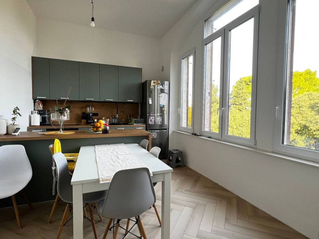 Kompletno je renoviran, a nalazi se na prvom katu zgrade austrougarske gradnje. Sastoji se od ulaznog predsoblja, kuhinje s blagovaonicom, dnevnog boravka, kupaonice te dvije spavaće sobe. U podrumu zgrade ima pripadajuće spremište u posjedu.